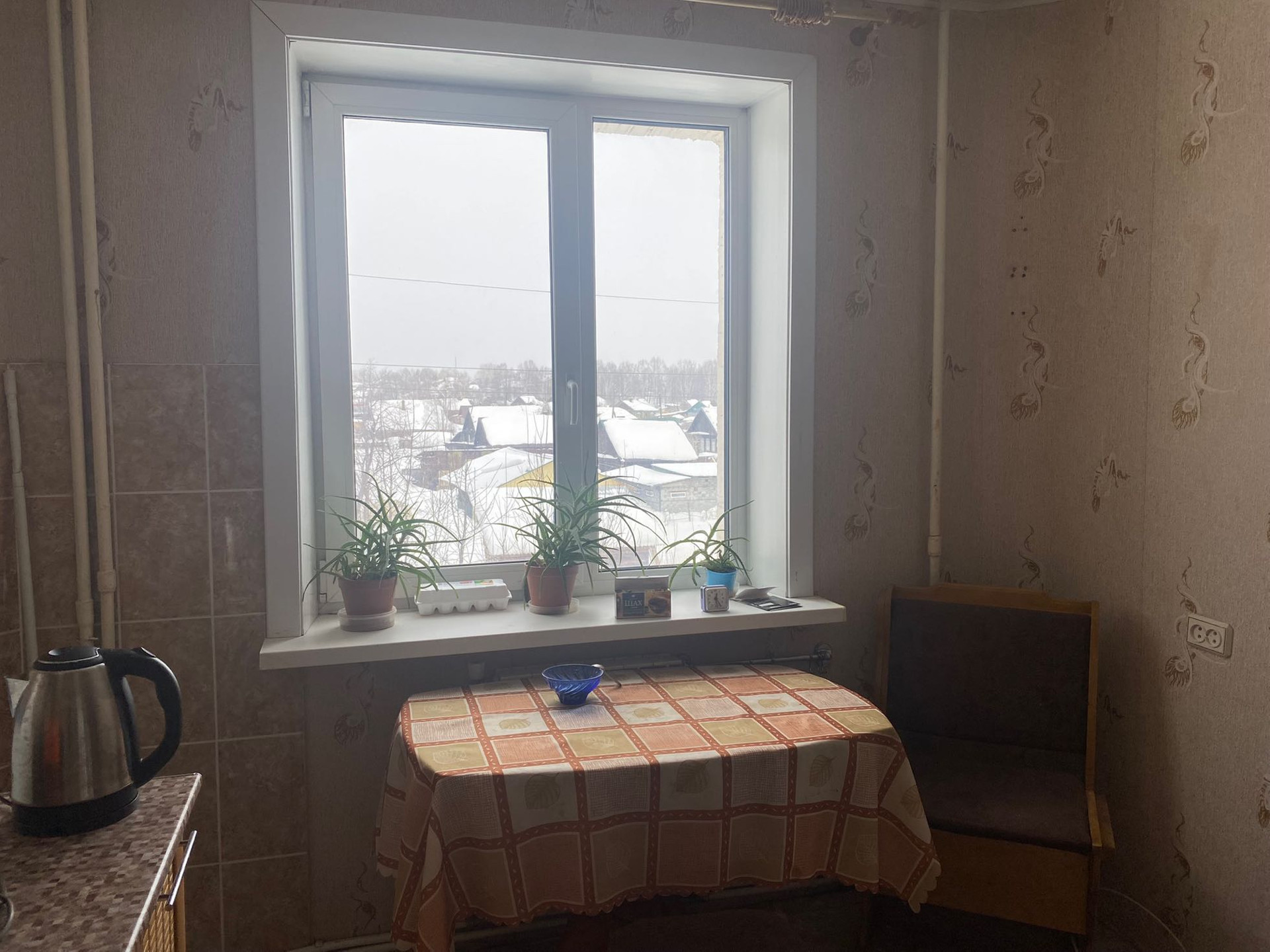 Окно маленькой комнаты выходит на солнечную сторону,детскую площадку, а окна кухни и гостиной на другую сторону.
