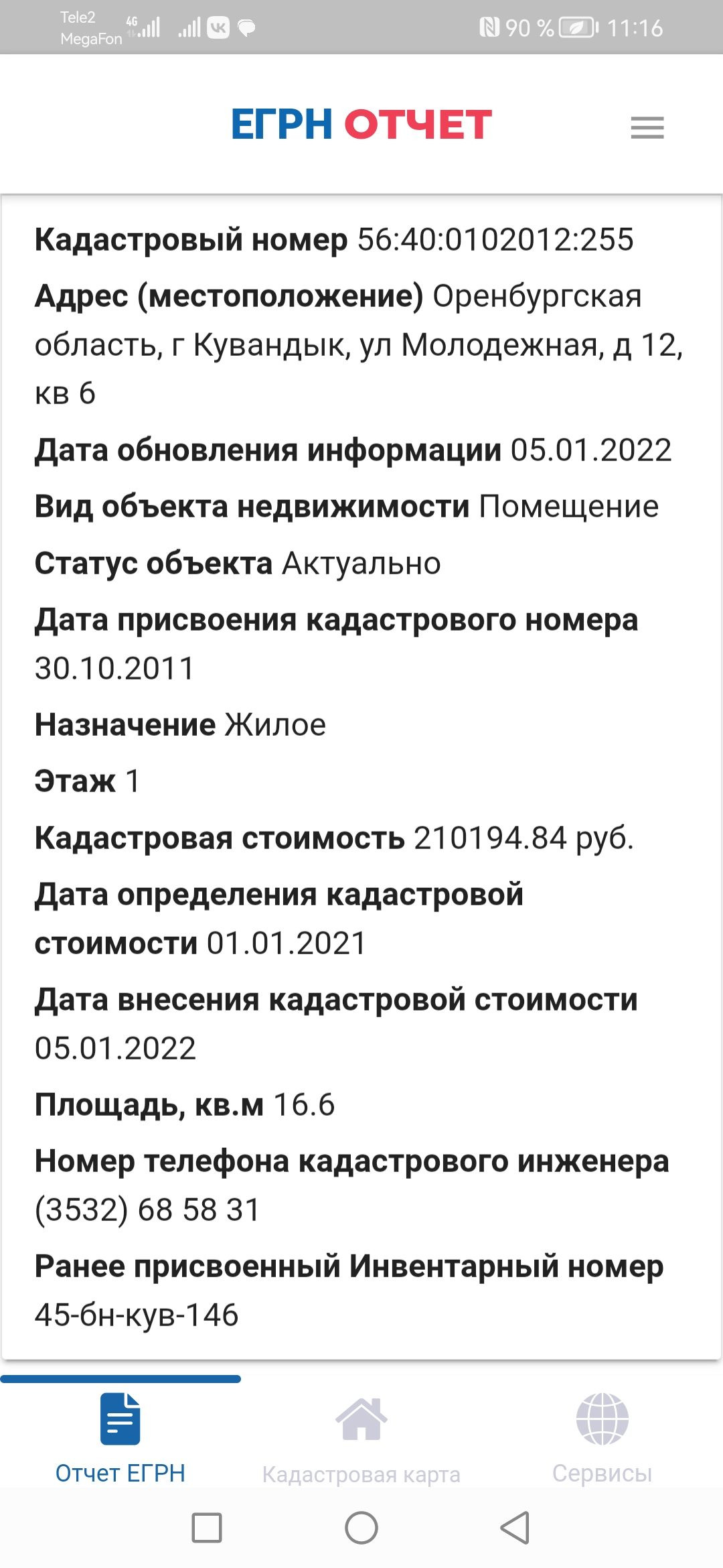 Общая площадь 16.6 м2