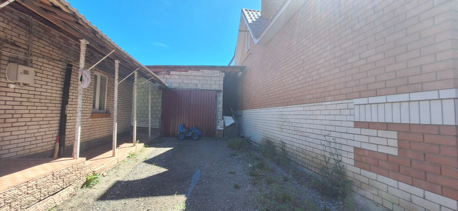 Имеется большой кирпичный гараж.