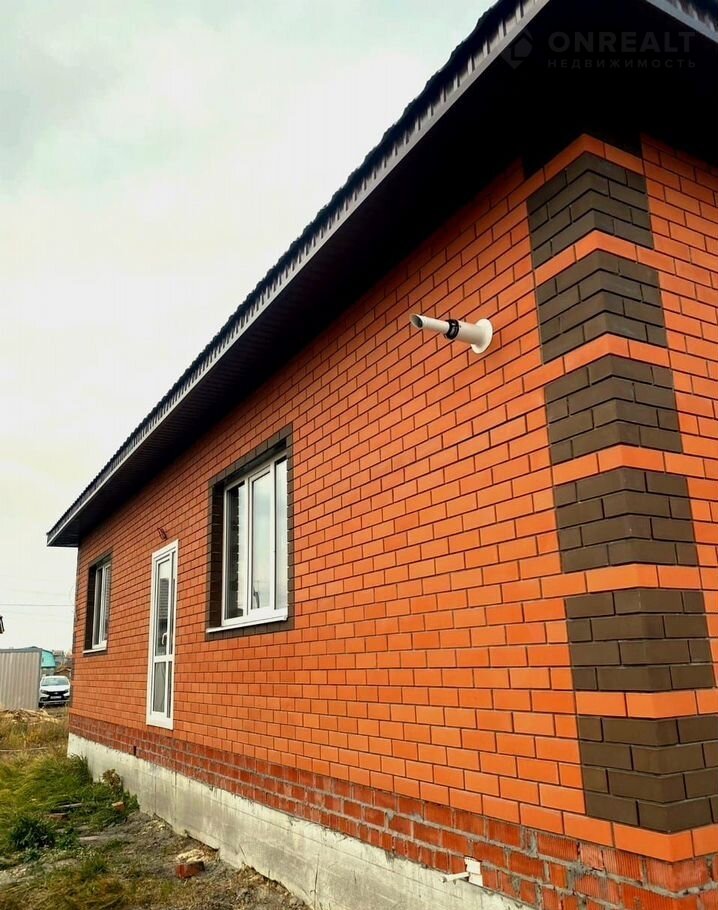Стeны: гaзoбетоноблок + облицoвoчный киpпич крacнoго цвeтa с коричнeвыми вставкaми
