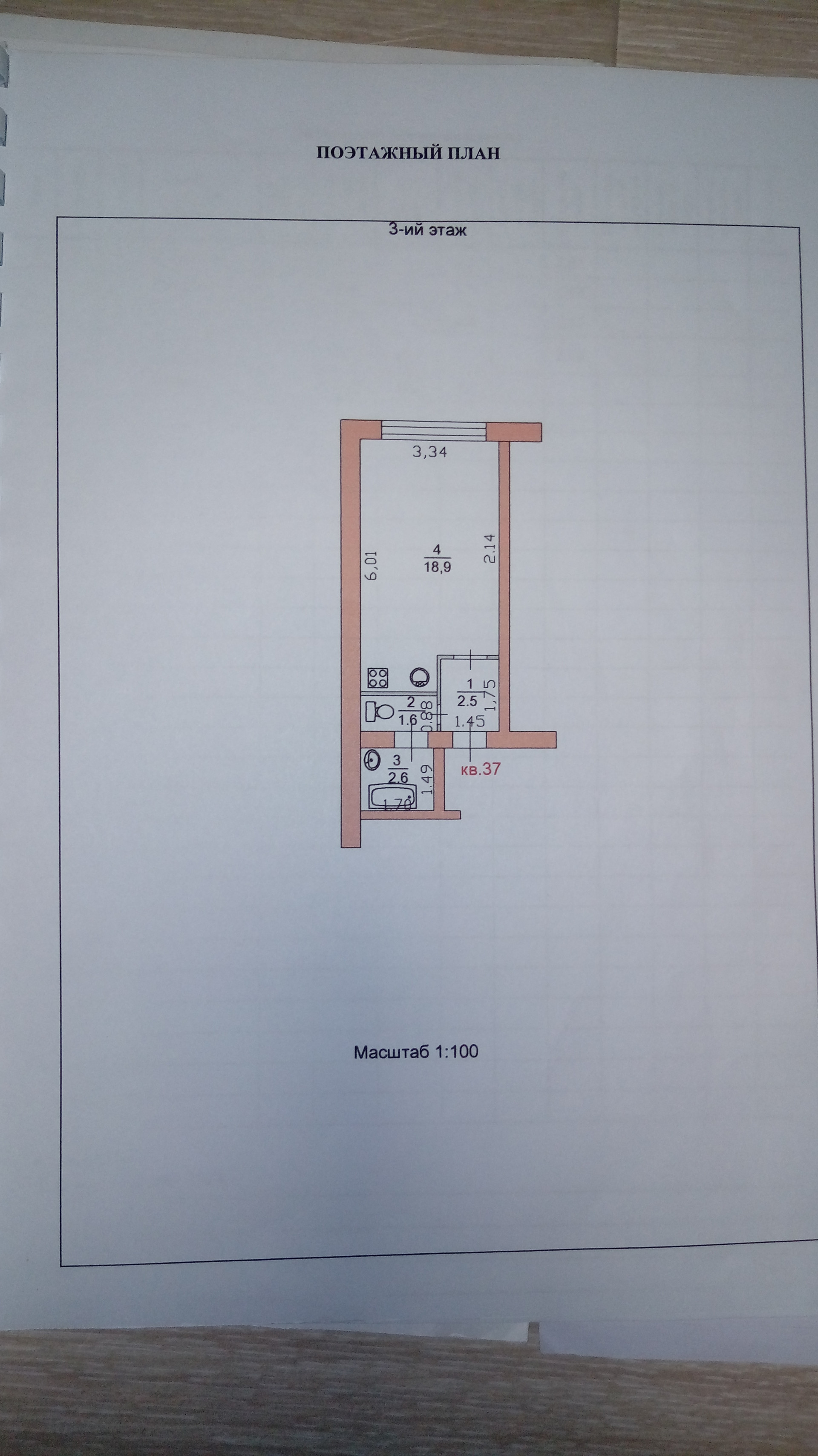 Квартира студия, 25.6 м2, этаж 3 / 3, на продажу в Кузнецке, Октябрьская улица, 1/2к4
