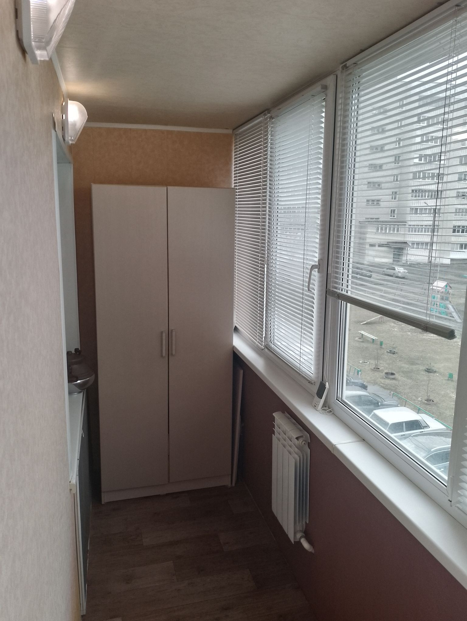 Лоджия в квартире утеплённая, отапливаемая (6кв.м).На лоджии установлены 2-х камерные стеклопакеты. Имеется 2 шкафа для хранения вещей.