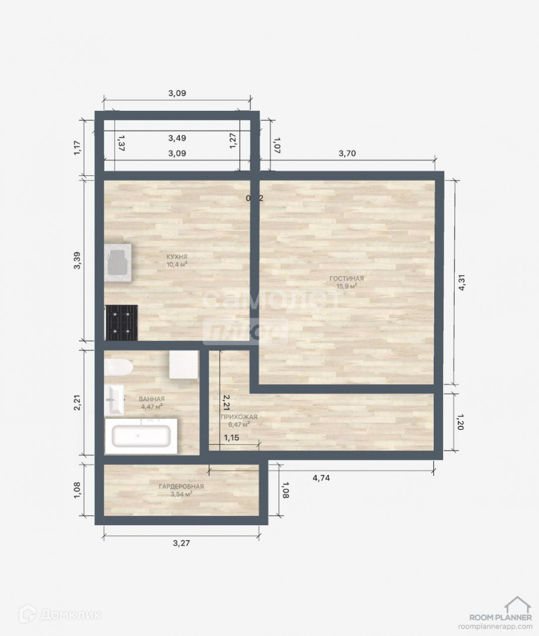 Общая площадь 42 м2