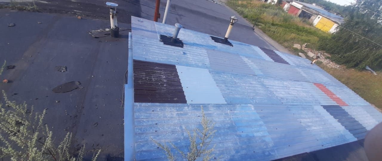 Две ямы, крыша плиты с утеплением покрытые металопрофилем.