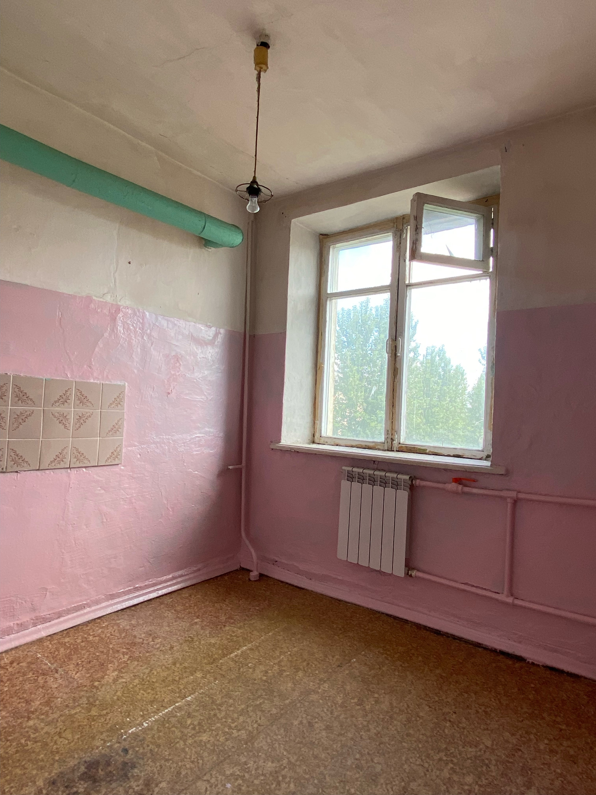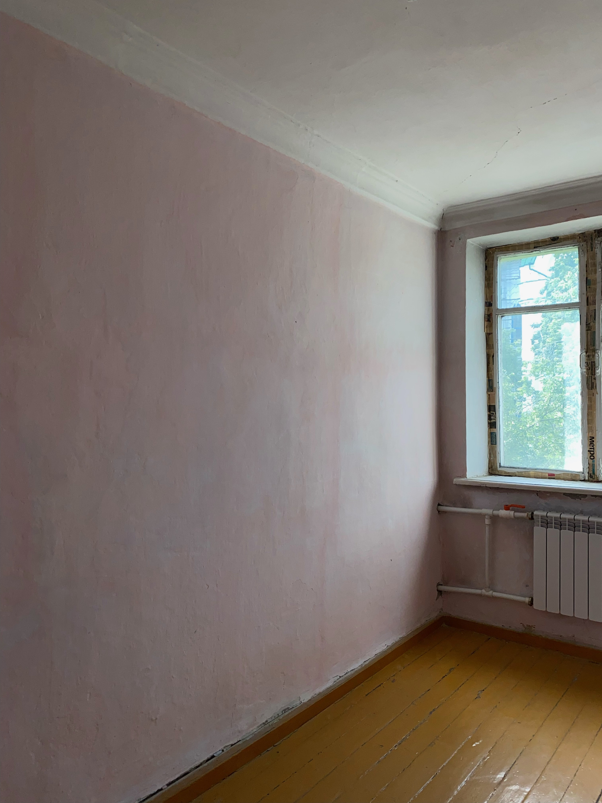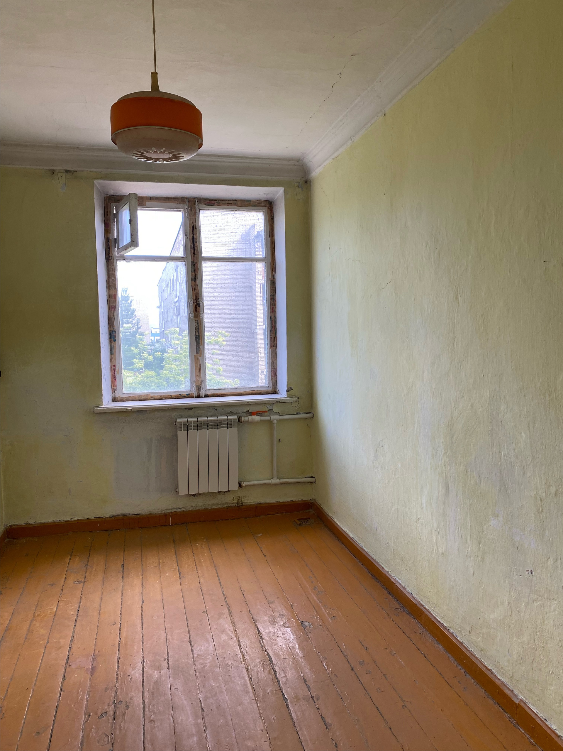 Комнаты на разные стороны, две изолированные и одна смежная. Квартира требует косметического ремонта, окна деревянные, установлены новые радиаторы отопления, водосчетчики, зал оклеен свежими обоями, кухня и санузел просто окрашены. Балкон не остеклен, имеется кладовка.