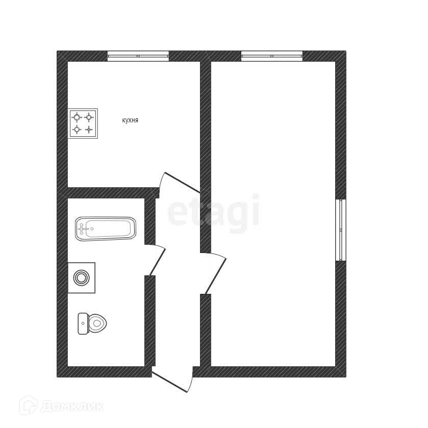 1-комнатная квартира, 27.6 м2, этаж 2 / 2, на продажу в Кыштыме, улица Гагарина, 4