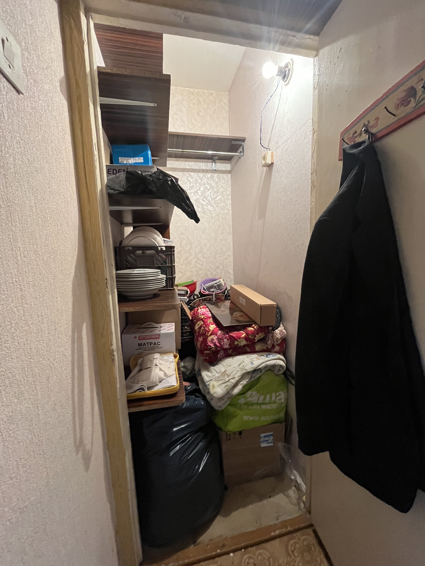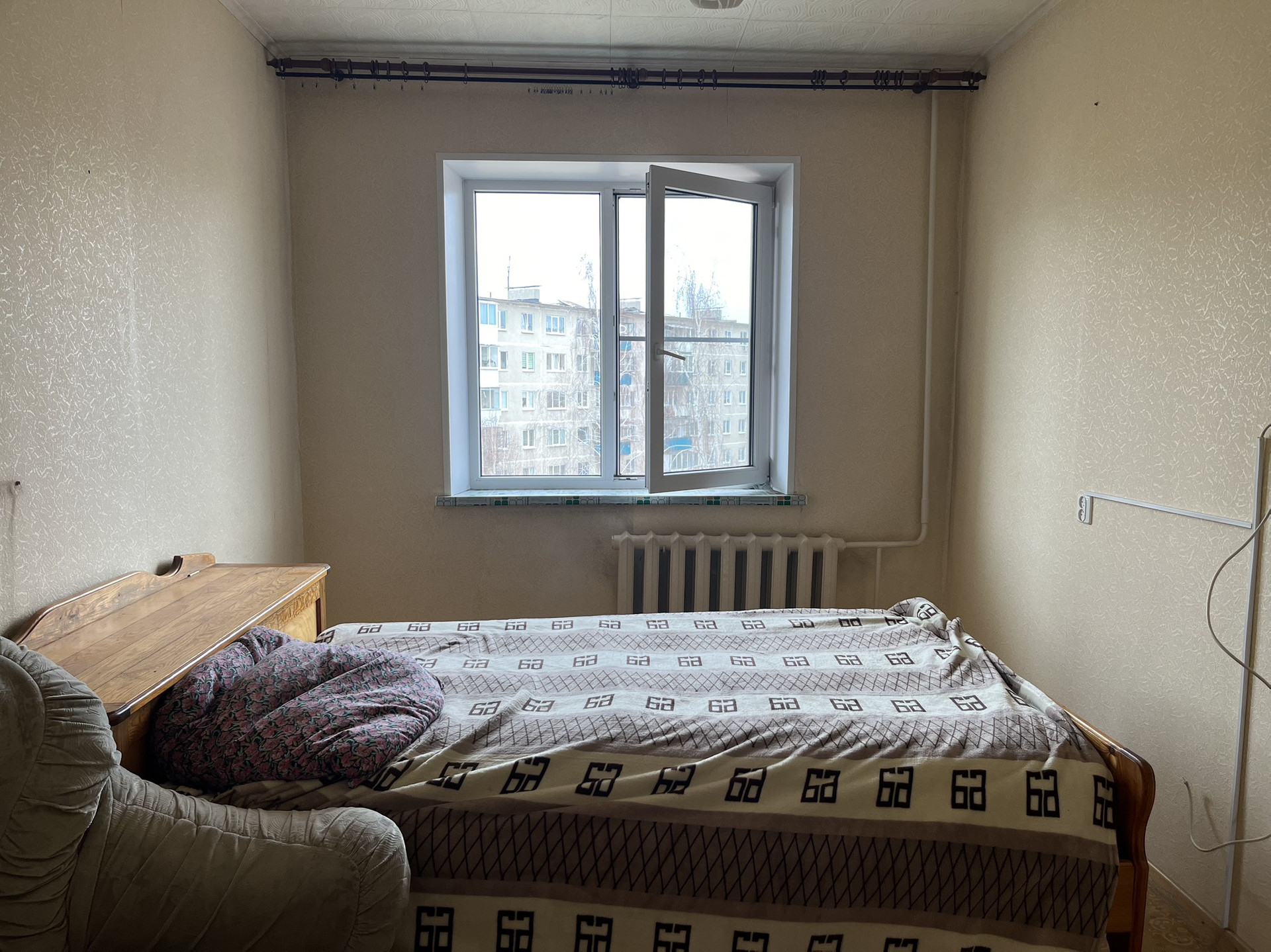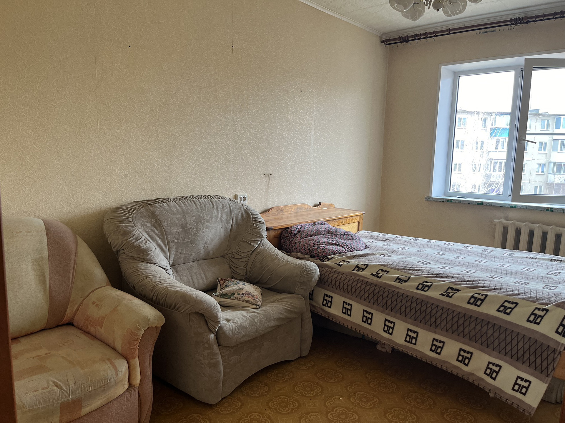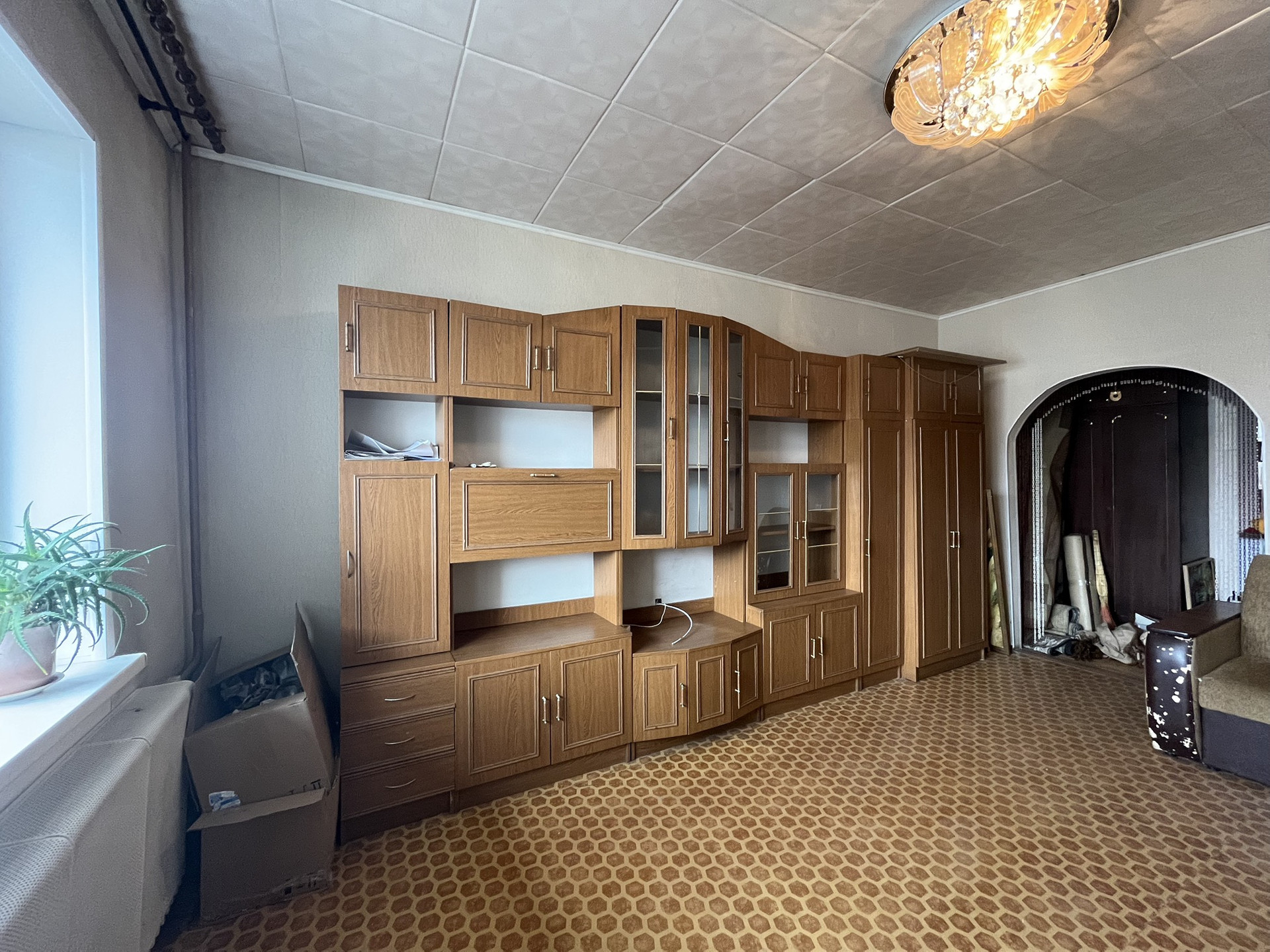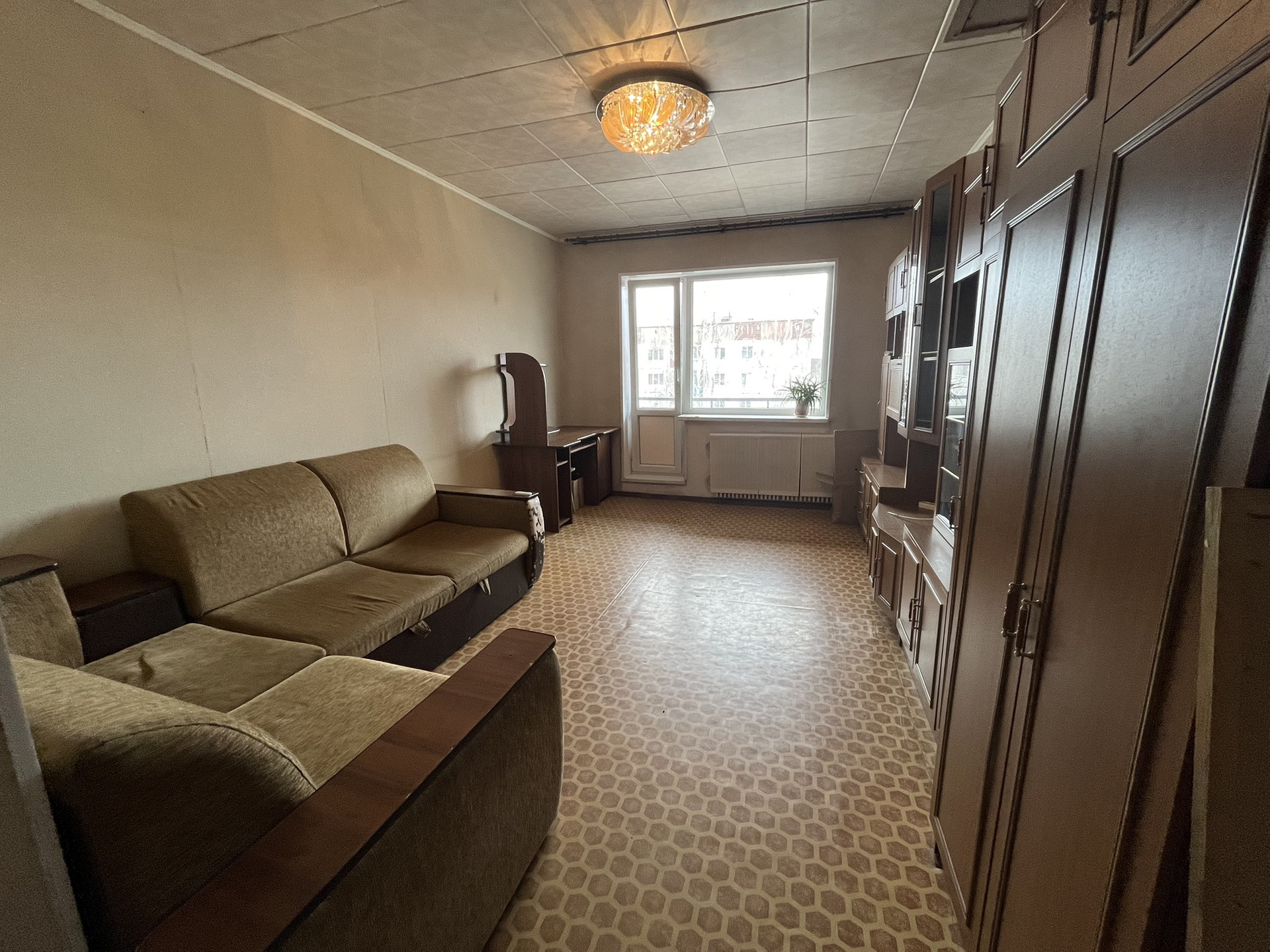 В квартире просторный зал и большая спальня , так же в квартире находится 2 кладовки: одна на балконе, вторая в самой квартире.