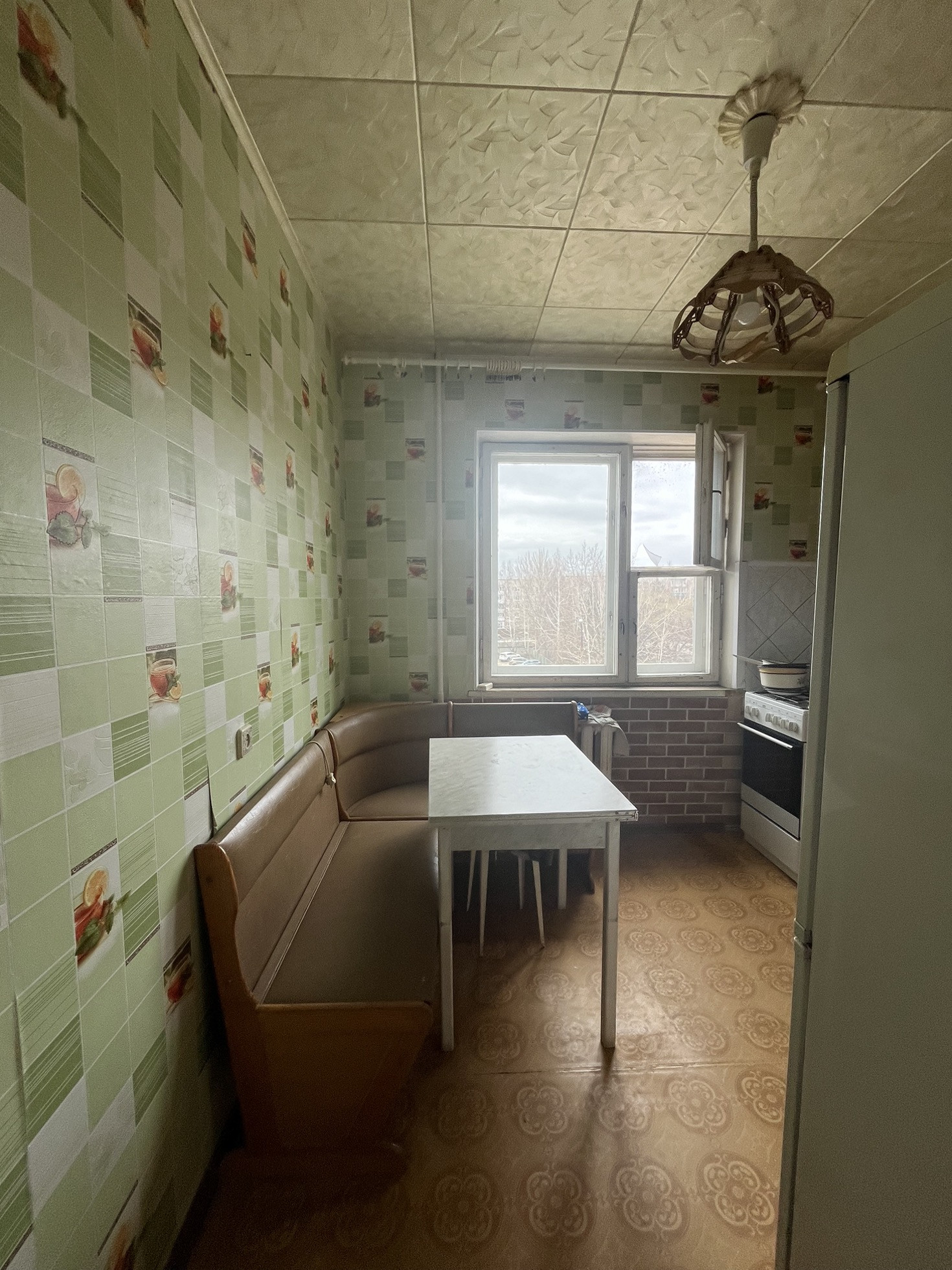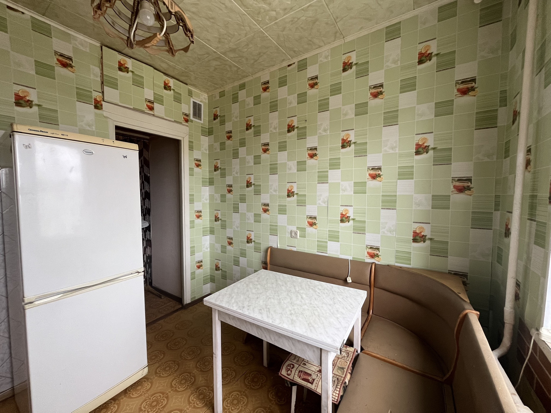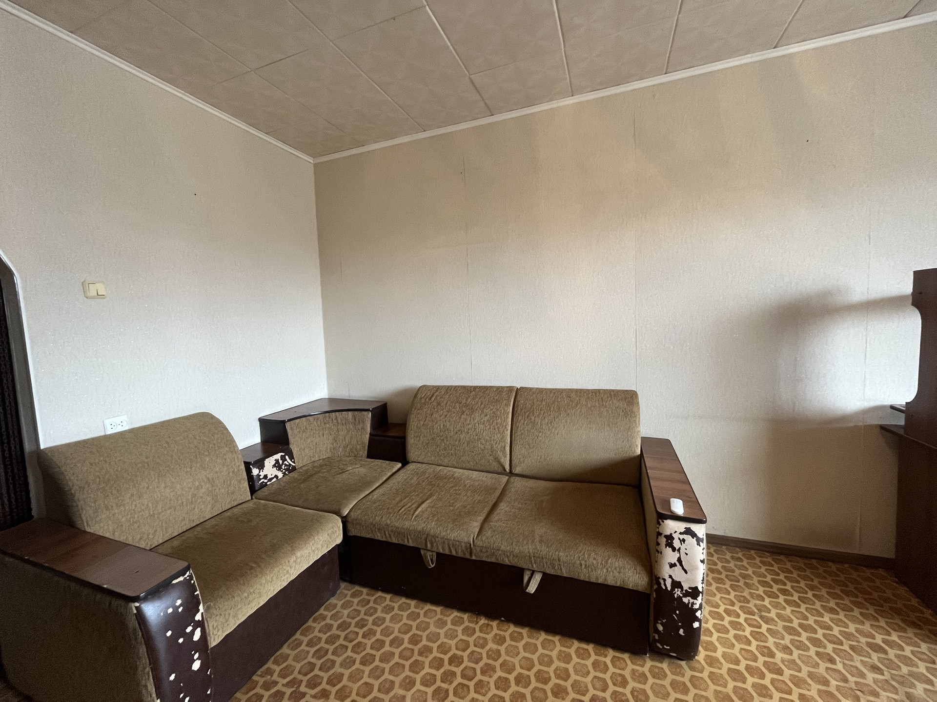 Мебель: диван, стенка, компьютерный стол, кухонный гарнитур, плита, холодильник, стол , два кресла остается по желанию покупателя.