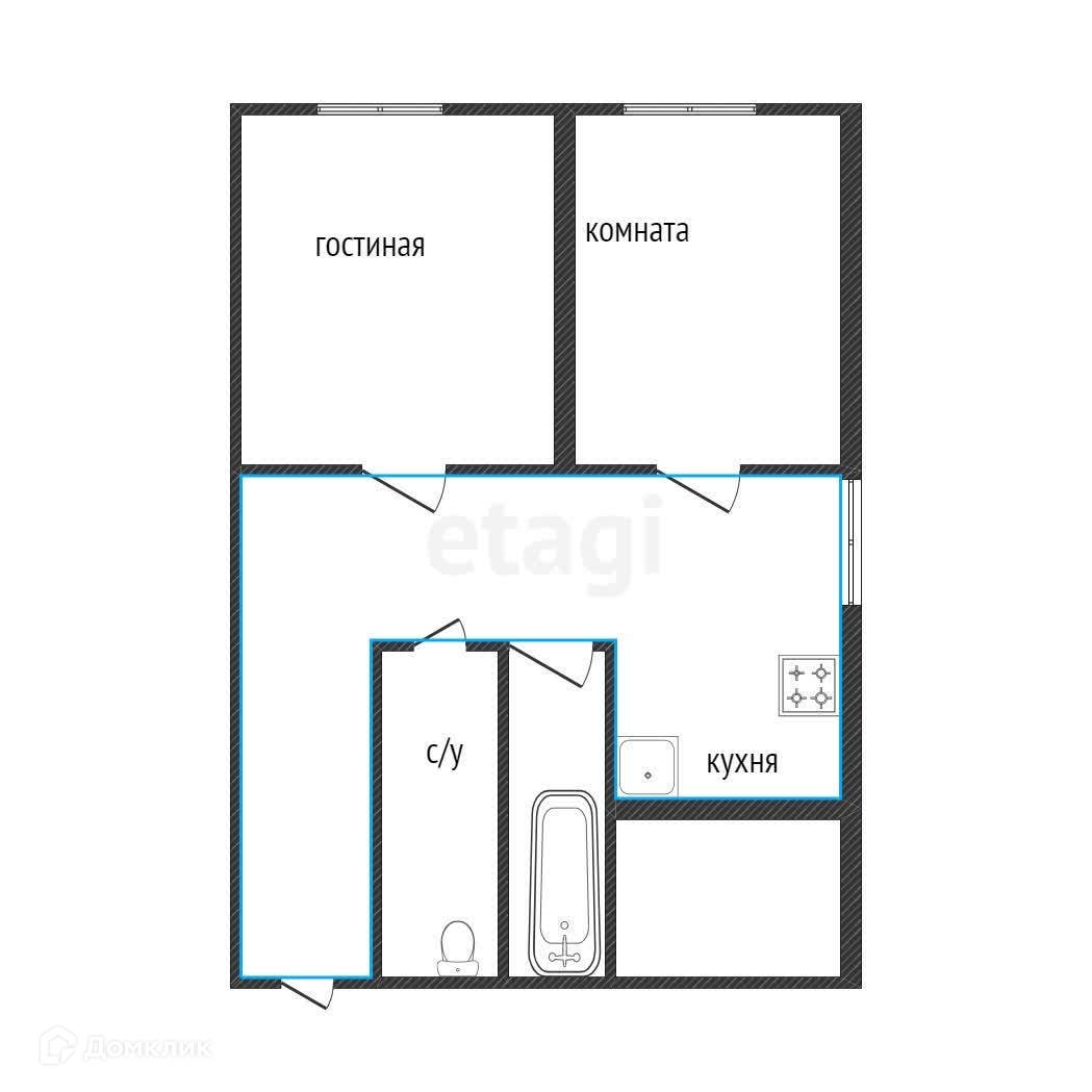 2-комнатная квартира, 43.1 м2, этаж 1 / 2, на продажу в Кыштыме, улица Гагарина, 4