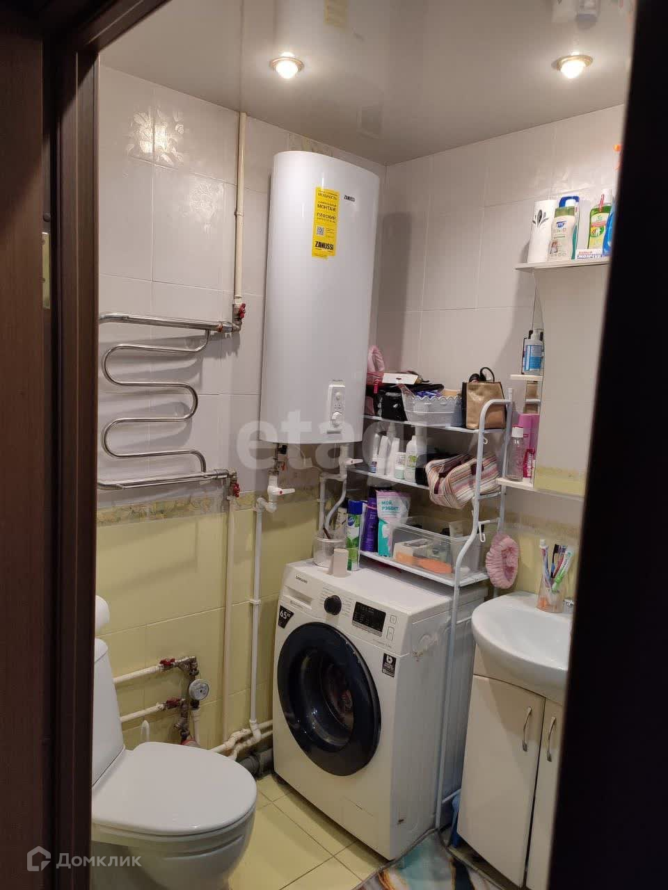 Санузел - совмещенный. Пол, стены в плитке, потолок, как и во всей квартире - натяжной. Благодаря душевой кабине в ванной комнате очень просторно. Так же есть водонагреватель.