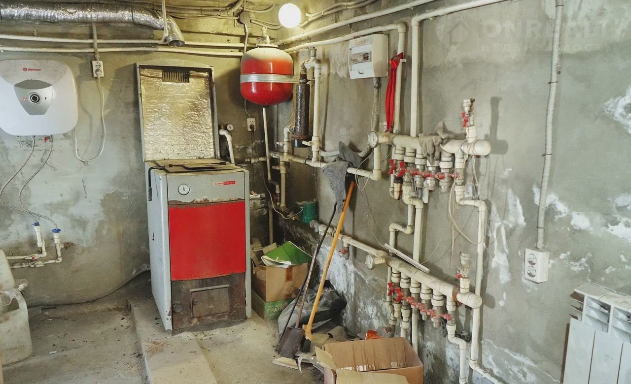 - Отопление осуществляется от твердотопливного котла в котельной, расположенной в цокольном помещении.