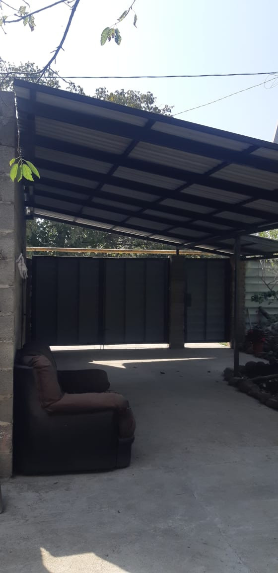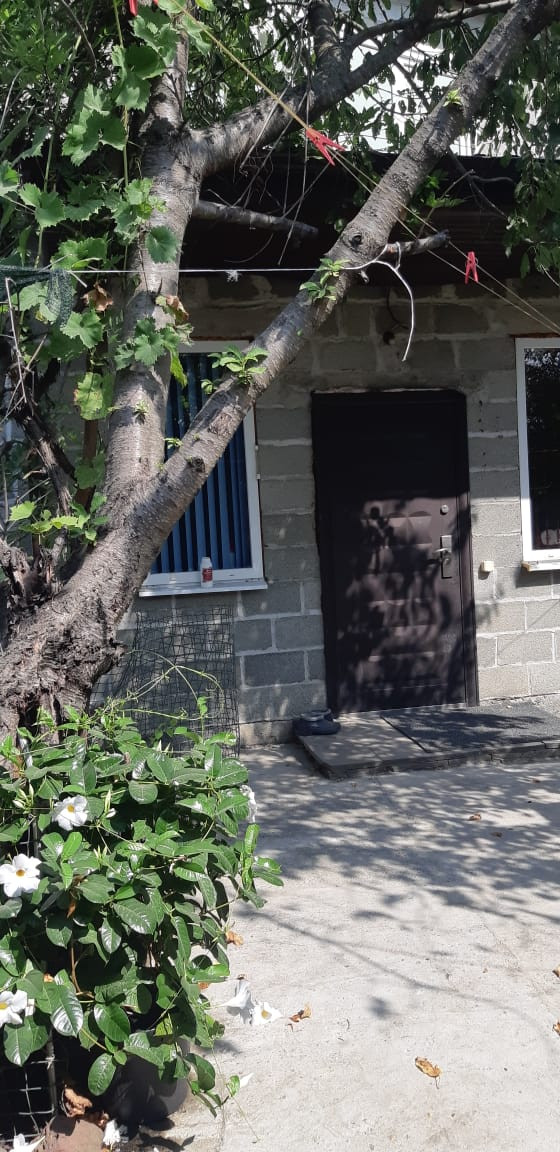 Дом снаружи не облицован, двор забетонирован, есть навес под машину и новый забор, гараж необходимо доделать.