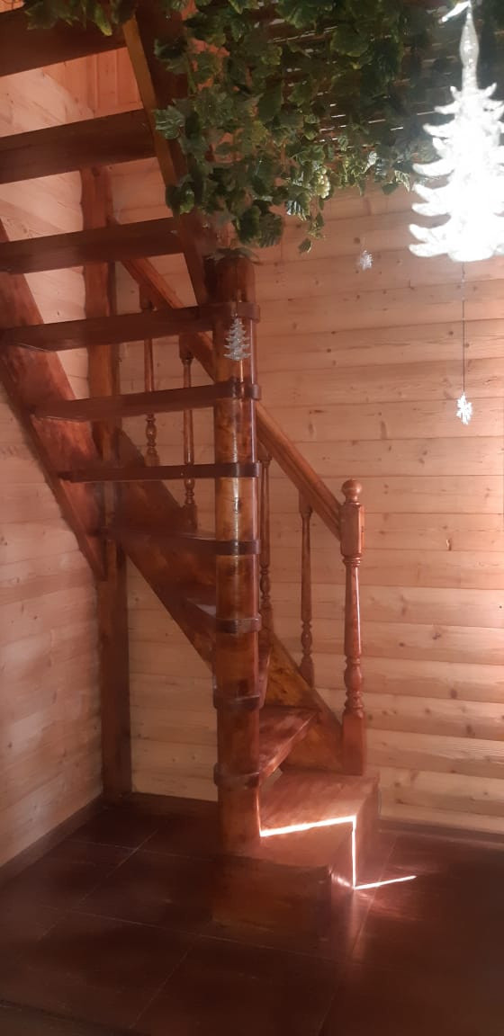 На первом этаже дизайнерская гостиная гостиная и кухня, две спальни, ванная, санузел; Наверху 2 комнаты и большой чердак, при желании можно сделать ещё комнаты.