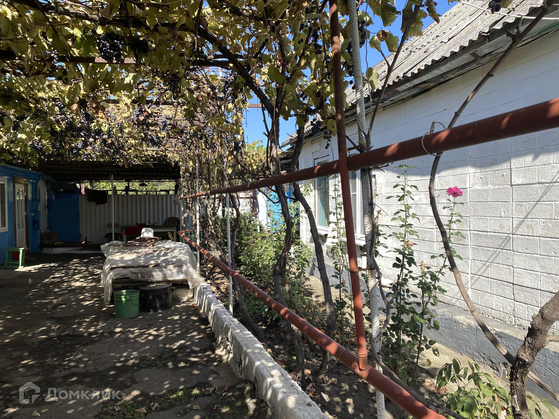 Растут фруктовые деревья. Много виноградных кустов.