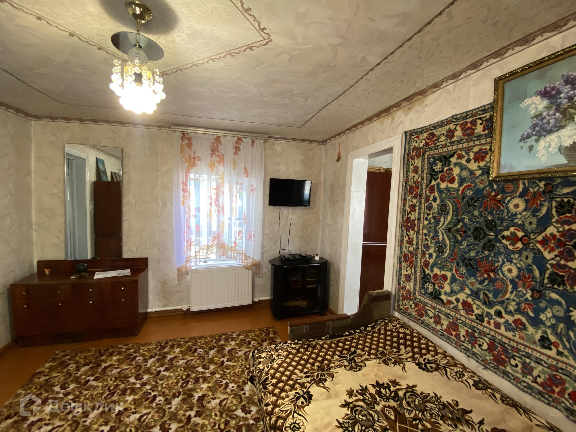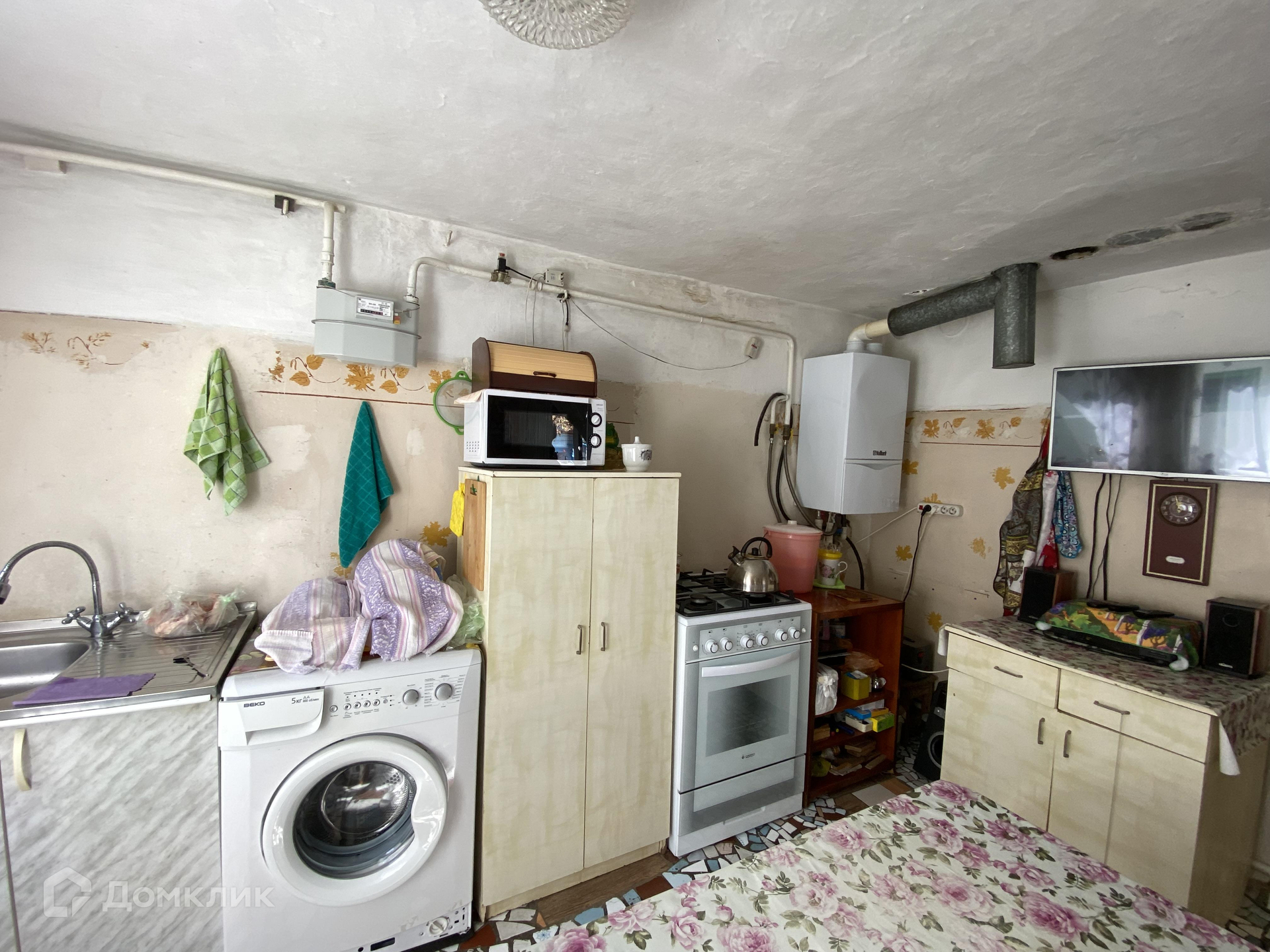 В доме 75 кв.м. Во дворе имеется летняя кухня со всеми коммуникациями, ванная комната, санузел.
