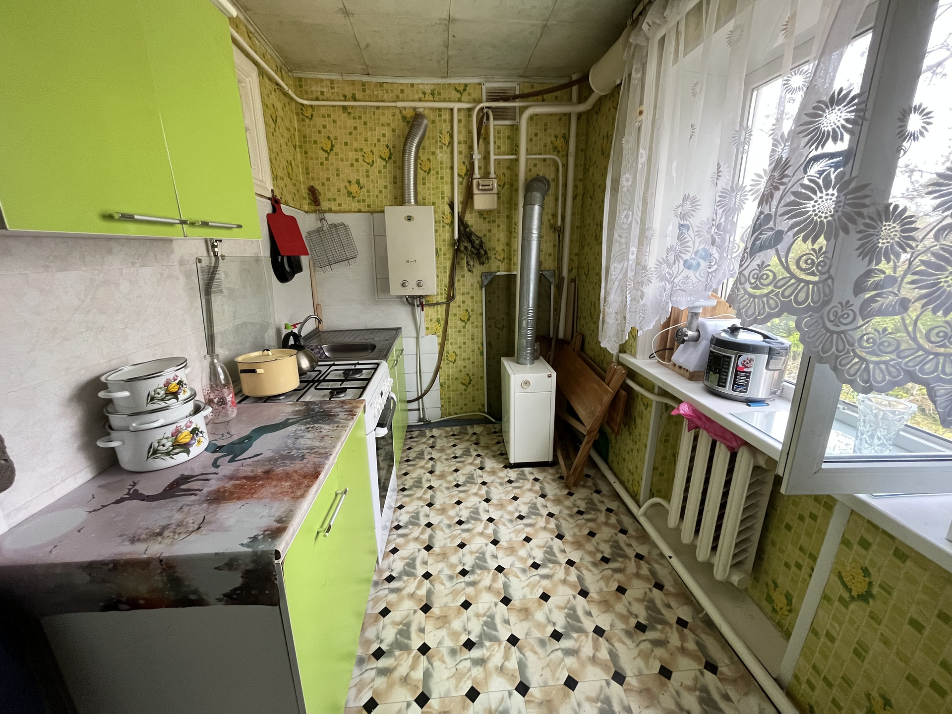 Продаю или меняю 2-х комнатную квартиру, с автономным отоплением, на 2-ом этаже, в г. Лабинске, район мкр. "Черемушки", по ул. Шевченко, 25. Общая пл., квартиры 44,1 кв.м.. Дом кирпичный, 3-х этажный, 1970 года постройки. Отопление газовое (напольный котел), водопровод центральный, горячая вода своя от газовой колонки. Коммунальные не большие. Комнаты смежные. Сан., узел раздельный. Всё в рабочем состоянии. Мп окна. Чистый и ухоженный подъезд. Имеется кирпичный сарай (можно переоборудовать под гараж). Место тихое, двор весь в цветах и зелени. Всё в шаговой доступности. До магазинов и школы 10 минут ходьбы. Садик за углом. До центрального продуктового рынка 20 минут пешком. Возможна продажа за ипотечные или кредитные средства, материнский капитал с доплатой. Обмен на частное жилье: 1/2 долю; квартиру на земле; коттедж, с вашей небольшой доплатой.