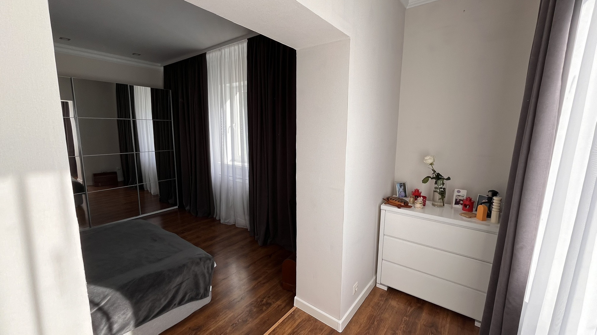 В квартире сделан косметический ремонт во всех комнатах: 2 хозяйские спальни, одна гостевая комната и большой зал.
