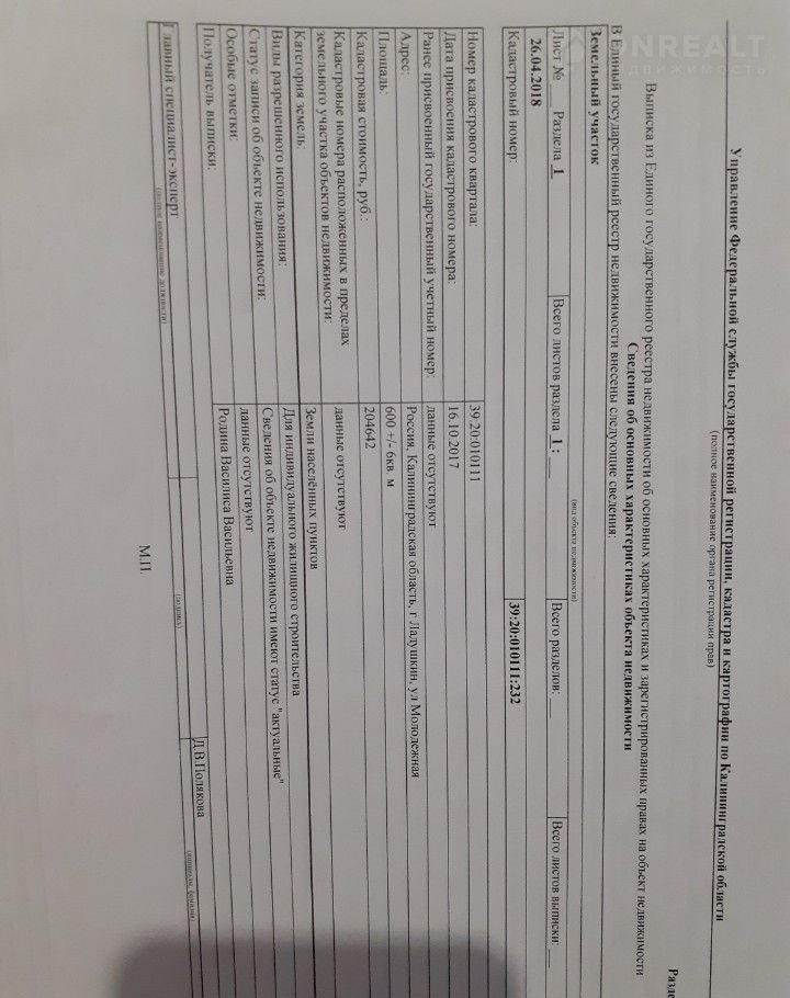 Участок под ИЖС, 6 сот. на продажу в Ладушкине, Молодёжная улица
