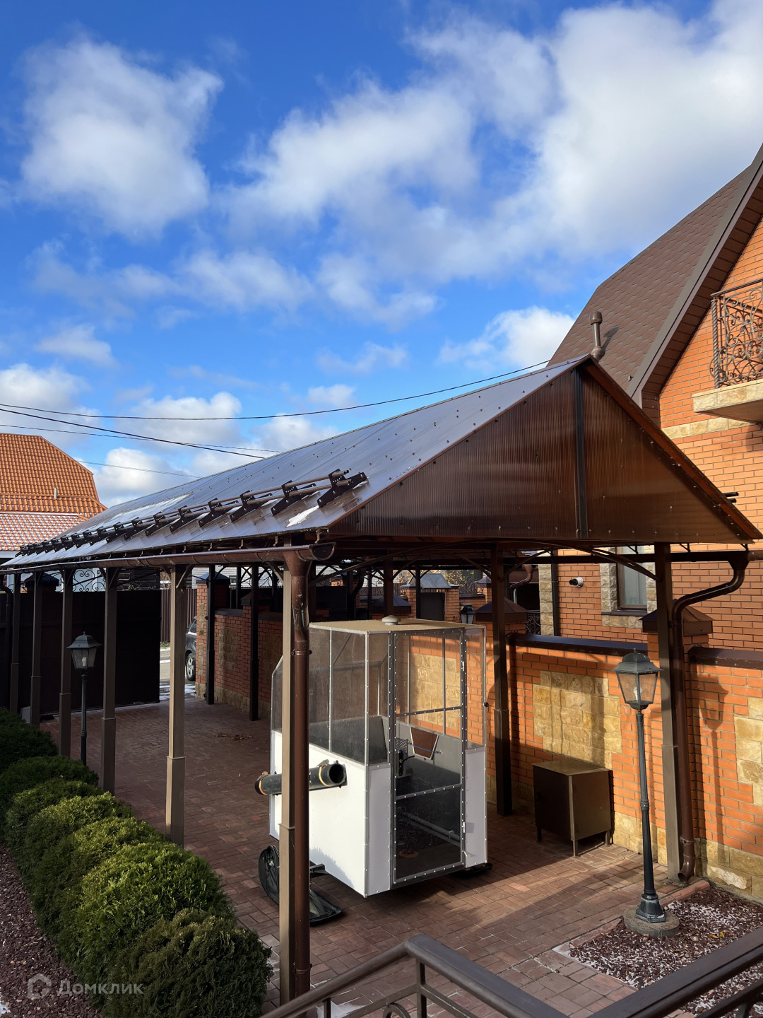 Есть баня, площадью 25 кв.м., полноценный гараж с отоплением, навесной гараж на две машины, хозяйственный блок, мангальная зона, беседка, летняя душевая кабина. Ворота в гараж и на территорию участка открываются автоматически. Установлена камера видеонаблюдения.