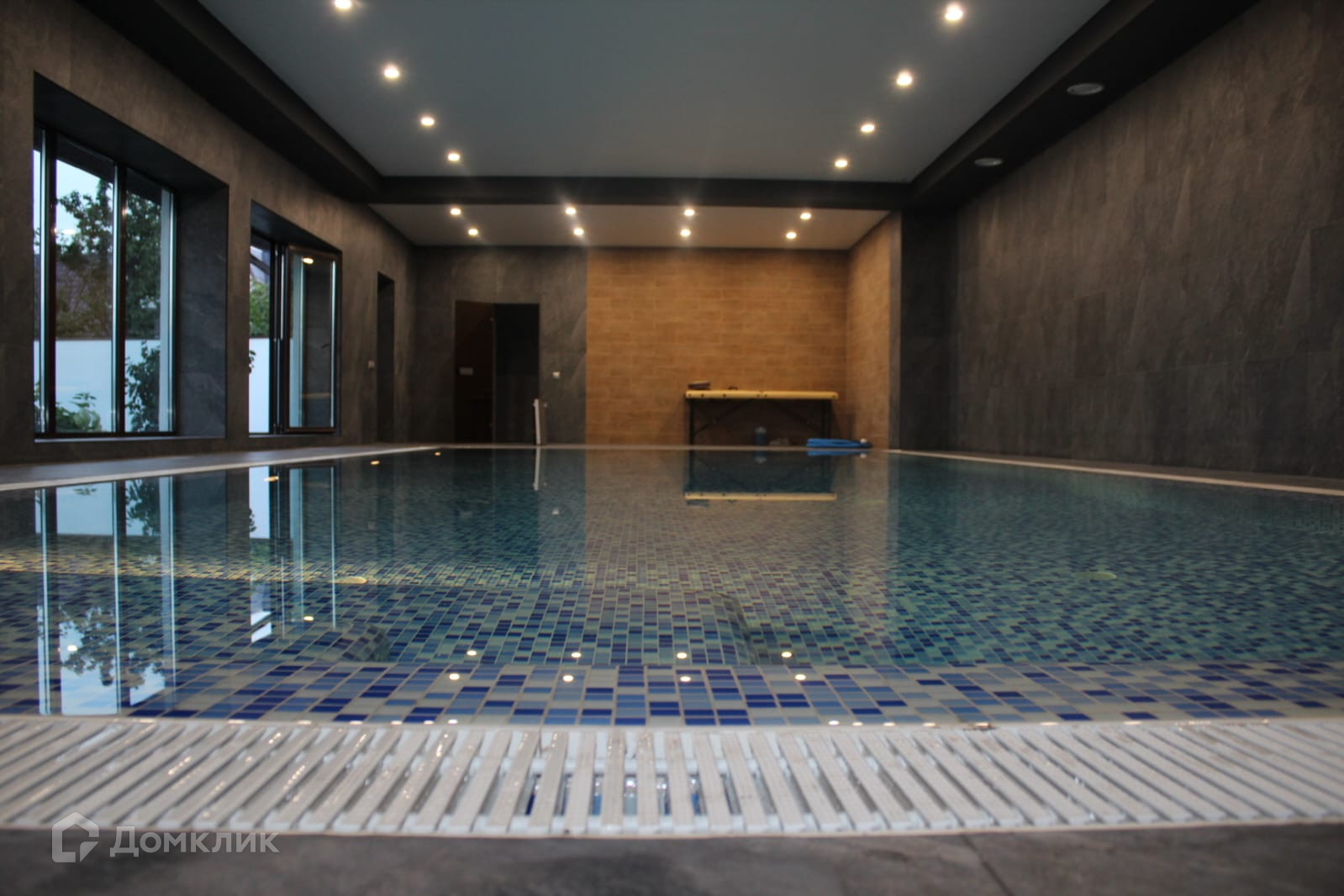 И самое главное-из бани выход в бассейн площадью 182,2 кв.м. В бассейне установлена современная система очистки воды, подсветка и напор воды противоток (система искусственного течения), система фильтрации и нагрева воды. Обшивка-лиственница, полы теплые ,плитка.