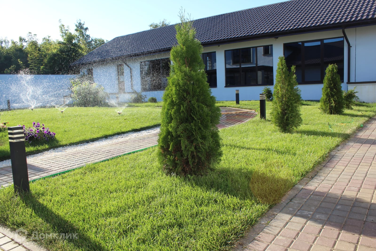 Участок облагорожен, с насаждениями, газоном, дорожками, подсветкой.