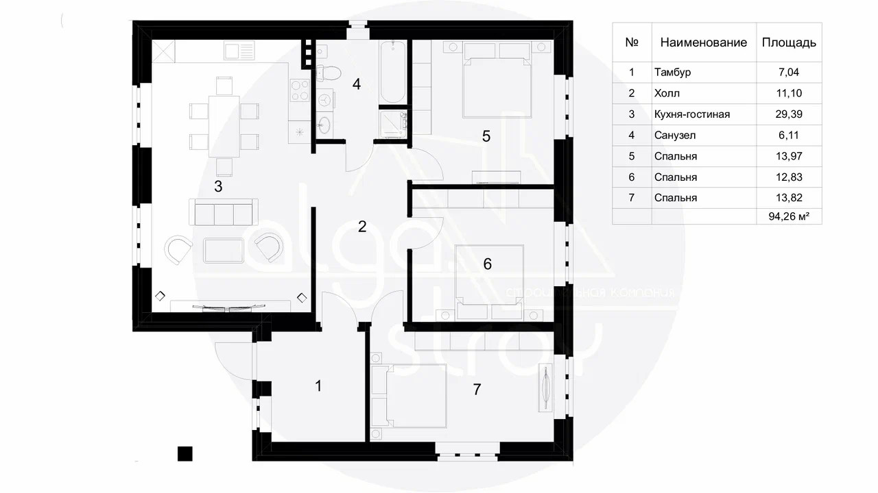 Общая площадь 94 м2