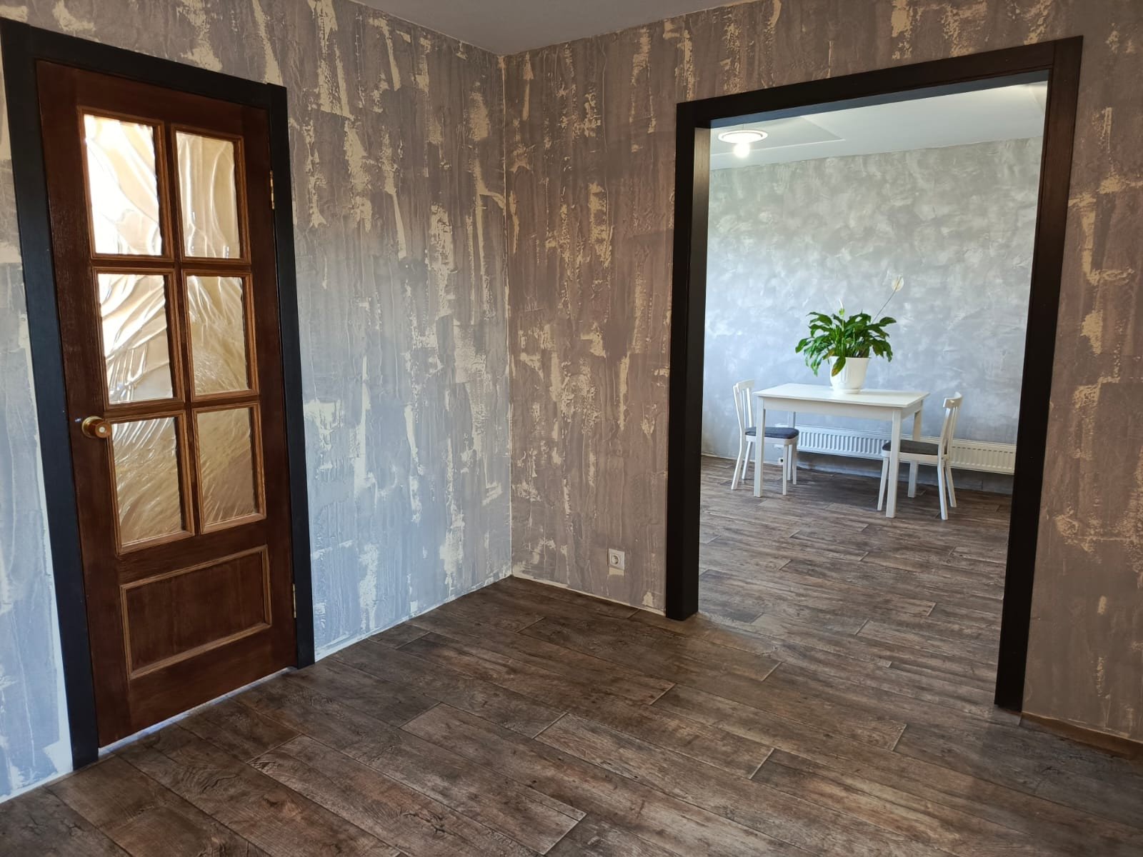 В доме очень удобная и комфортная планировка имеется входная группа, прихожая, две светлые комнаты, просторная кухня-студия (гостиная), санузел! Ремонт выполнен в современных оттенках. Новые межкомнатные двери, спальный и кухонный гарнитур, стол, стулья, душевая кабина - вся мебель остается!