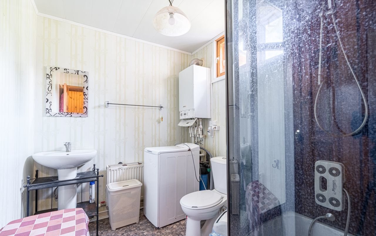 По коммуникациям: заведен свет, вода из скважины, канализация – выгребная яма. Газ в доме.