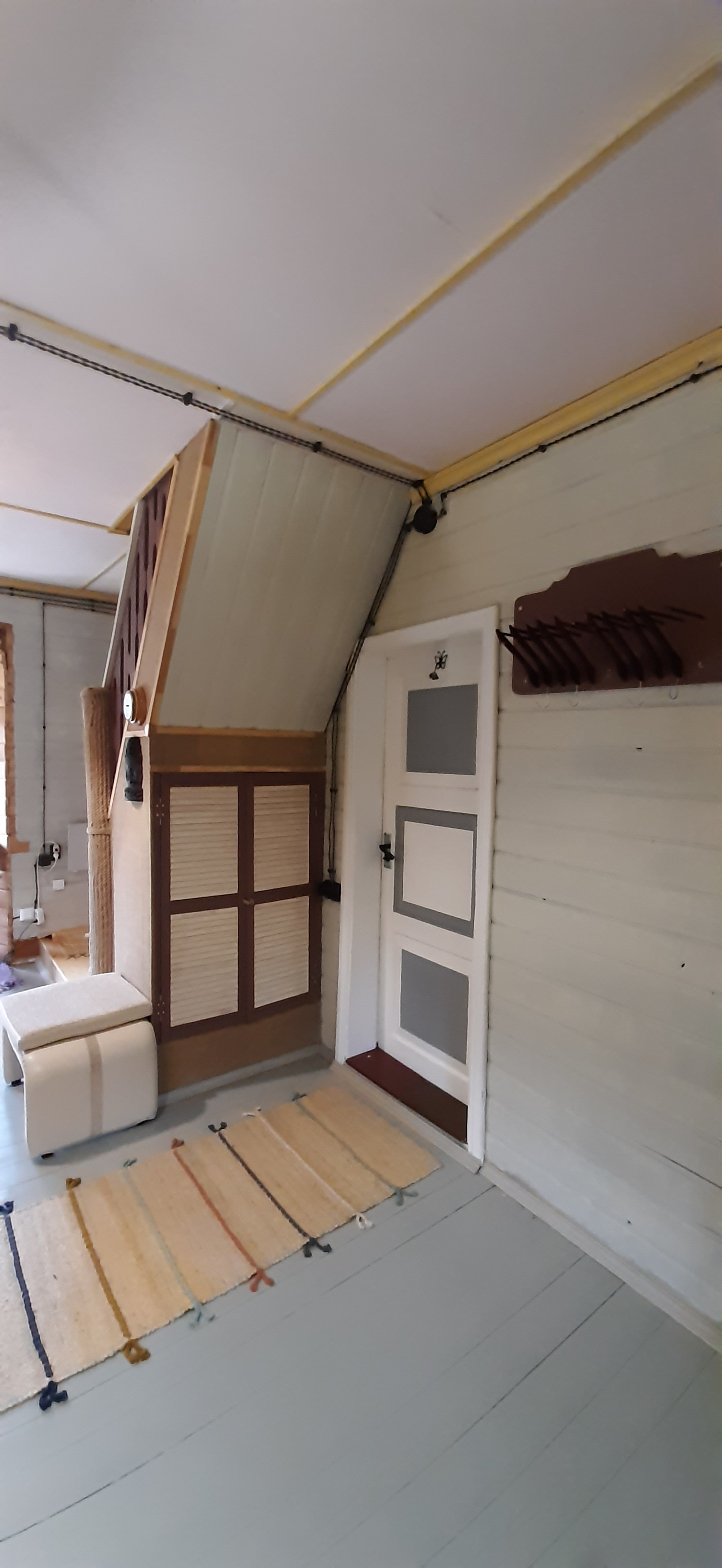 На втором этаже две комнаты, одна изолированная с санузлом, гардеробной и панорамным видом из окна. Есть большой застекленный балкон с видом на сад.