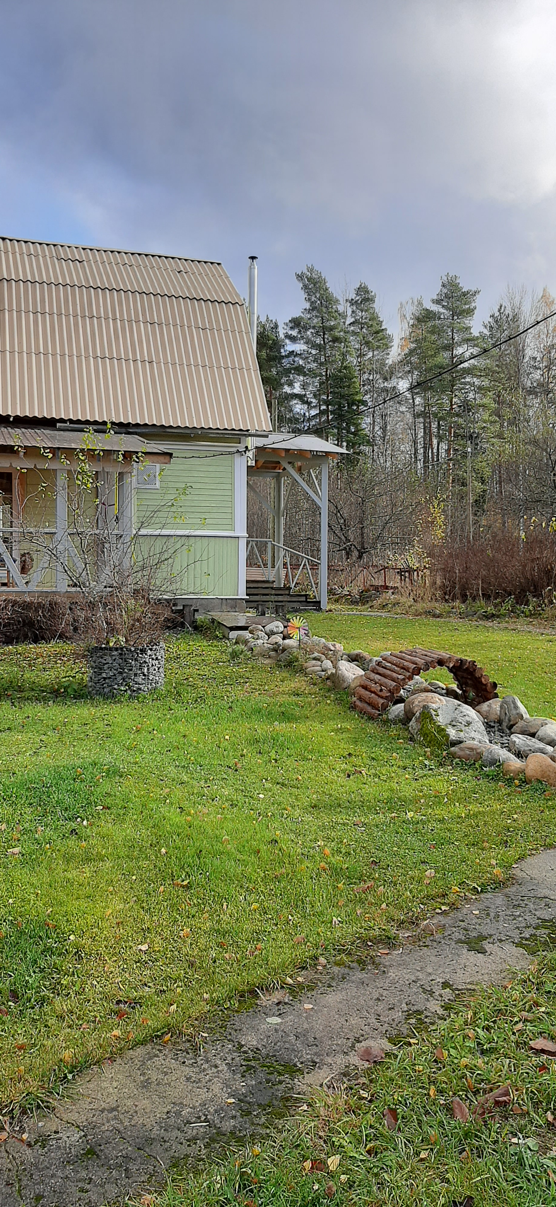 На участке растут декоративные ивы, кедровый стланник, бадан.