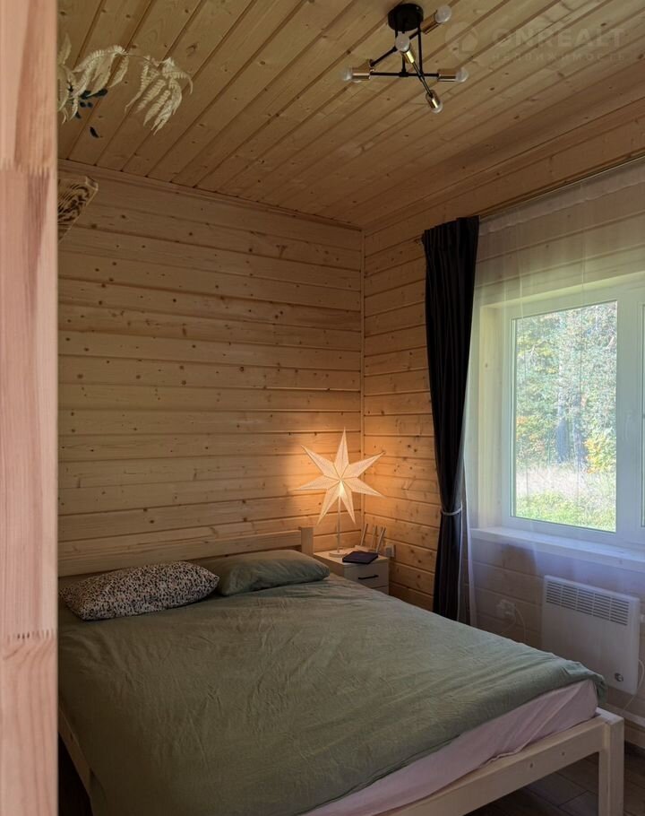 В доме две комнаты и могут разместиться четверо гостей: на двуспальной кровати и раскладном диване (его габариты – 1,4*1,9 м).
