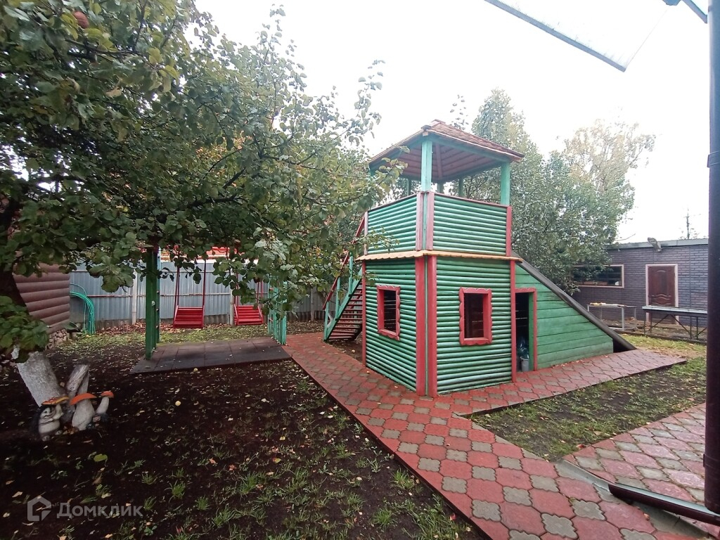 Детская площадка с качелями и горкой.