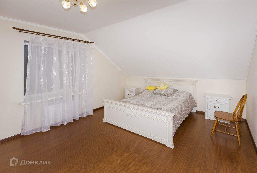 На второй этаж ведет лестница, сделанная вручную из массива дуба, на котором расположены 5 комнат (17,5; 16,3; 13,7; 13,7; 12 кв.м.) и остекленный балкон.