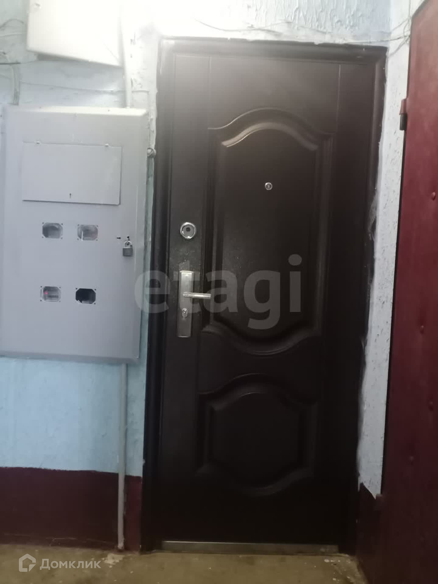 Домофон, железная входная дверь. Установлен счетчик на воду.