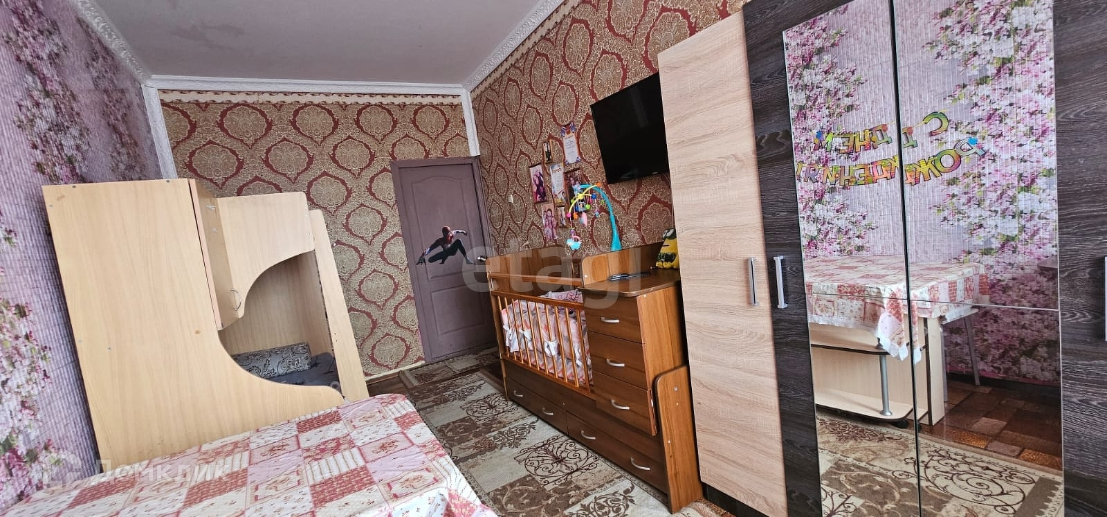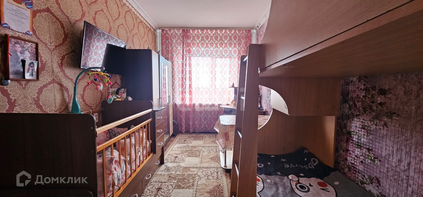 Срочно продается комната в четырехкомнатной квартире. Выполнен косметический ремонт. Также в квартире имеется вместительная кладовая. После продажи частично остается мебель. Обременений нет.