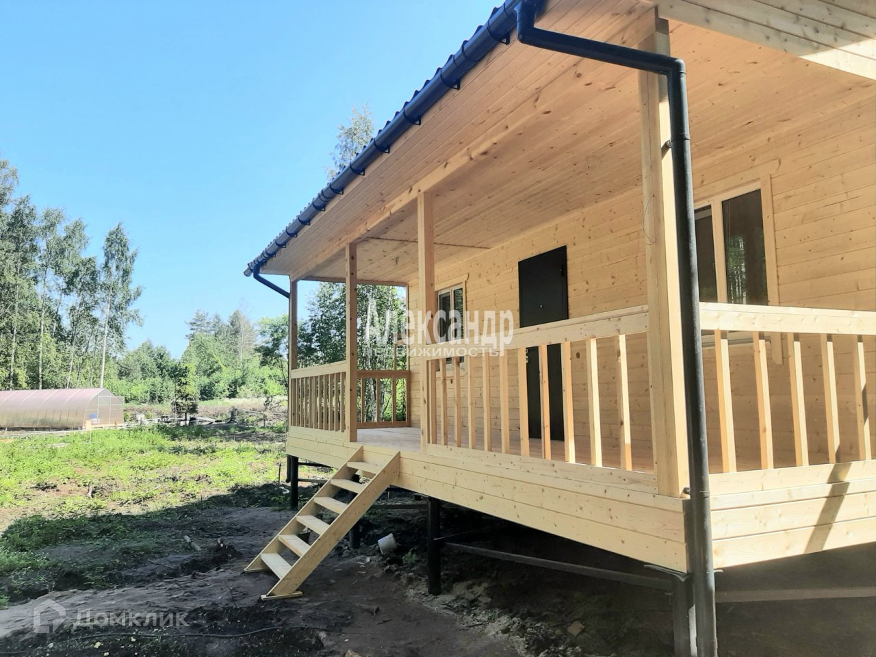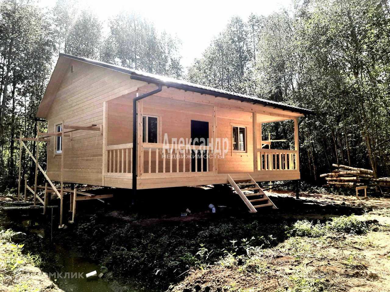Дом построен по каркасной технологии на свайном фундаменте.