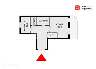 Общая площадь: 22.8 м2