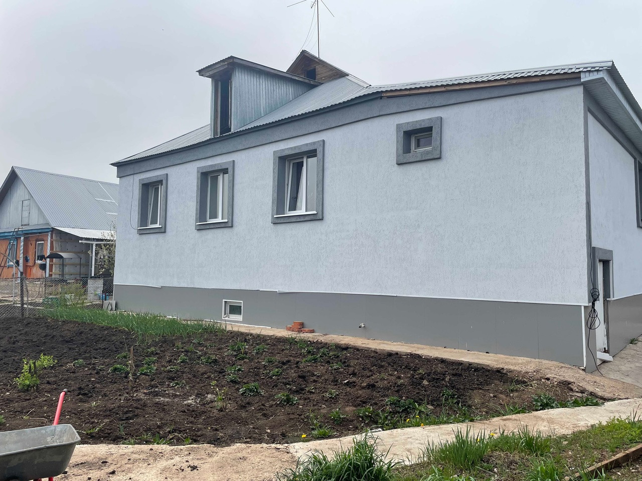 Дом одноэтажный с большим цокольным помещением.