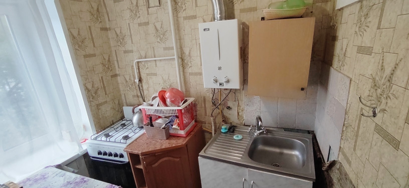 Уютная, небольшая однокомнатная . Дом Малосемейного типа. Газ. колонка, окна пвх. С/узел совмещен. Есть кладовка.Потолки выровнены.