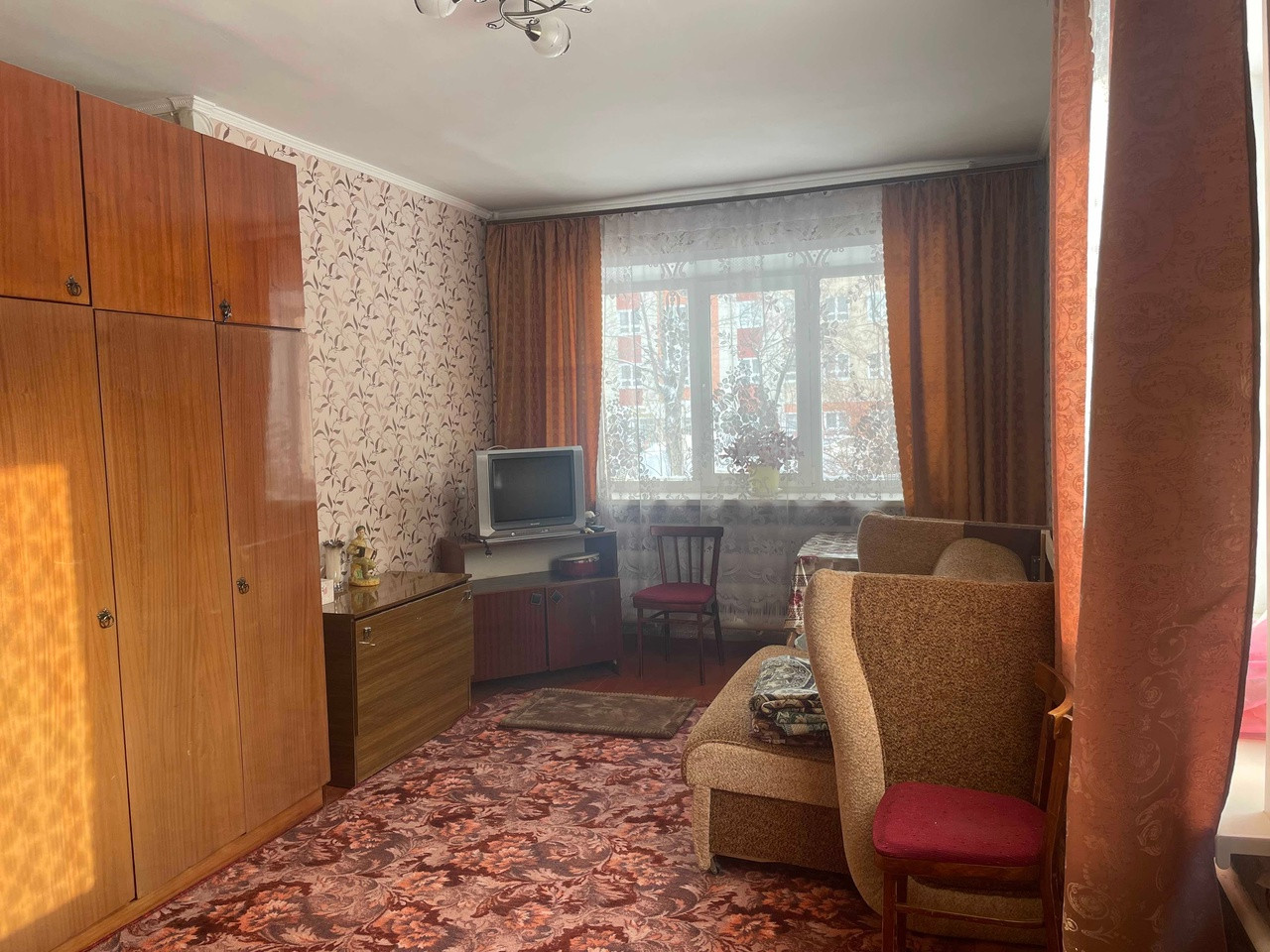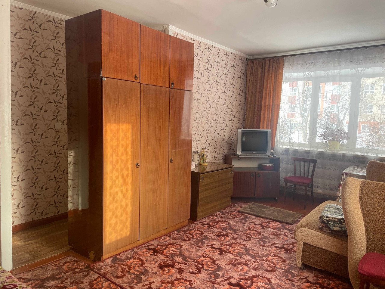 Однокомнатная квартира, первый этаж, но теплая, светлая.