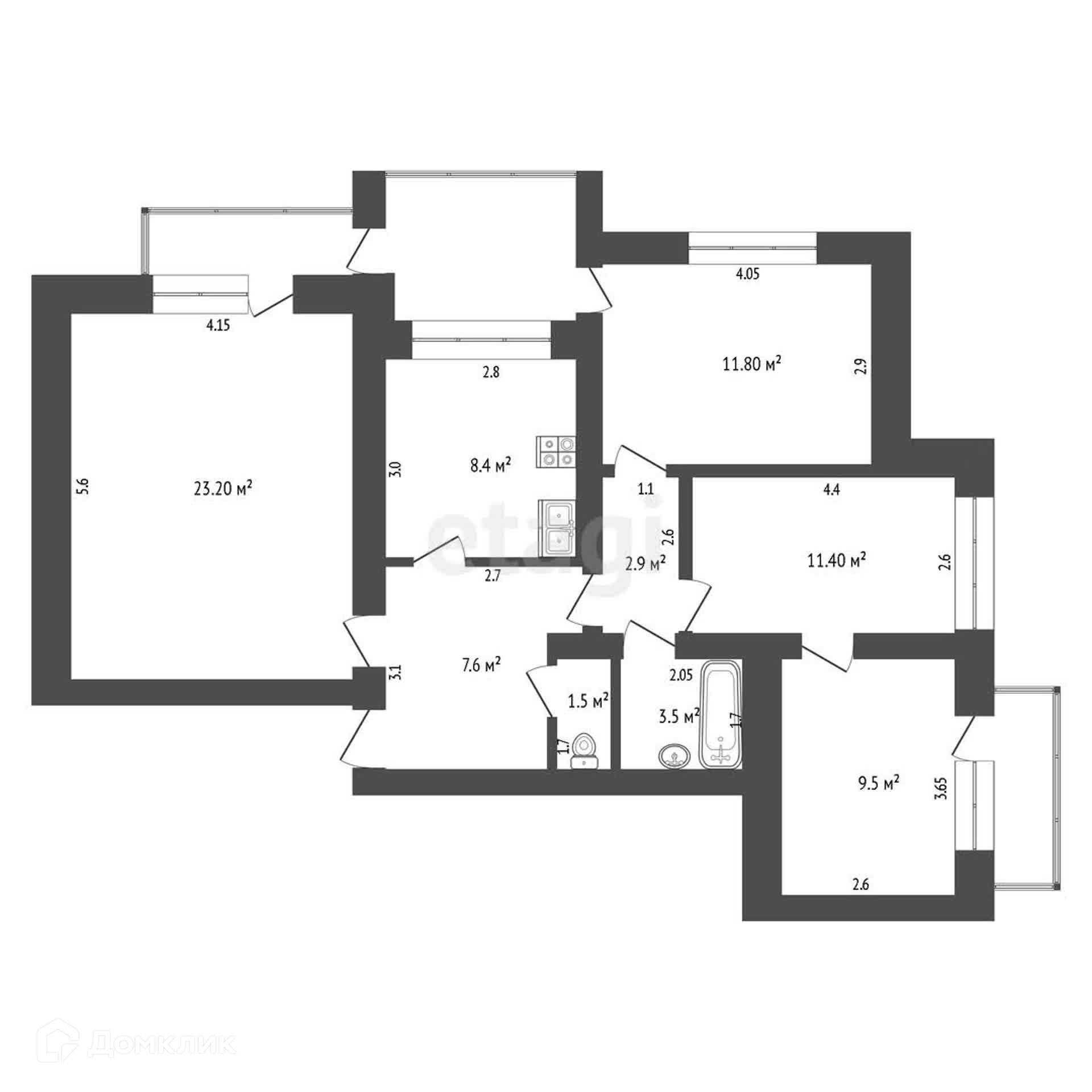3 облагороженных искусственным камнем утеплённых балкона: 1 с выходом из кухни и 2 из жилых комнат (панорамное остекление пластиковыми стеклопакетами).