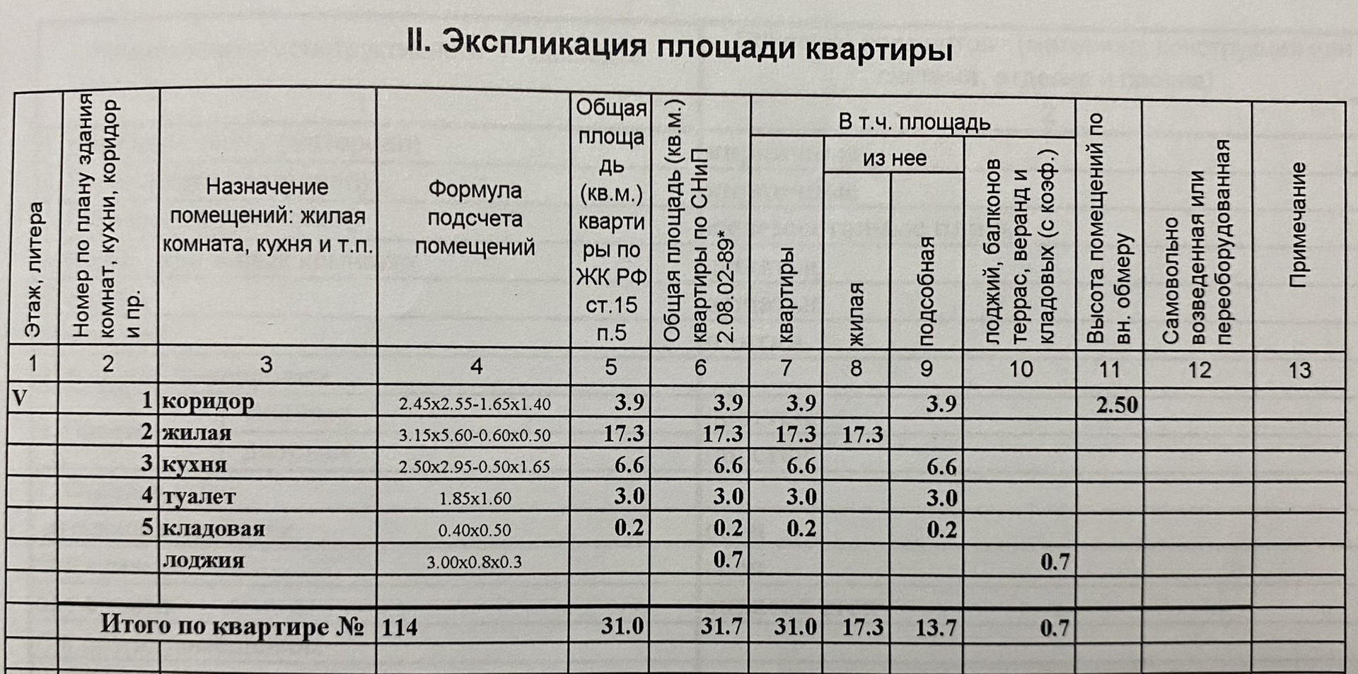 Высота потолков 2.5 м