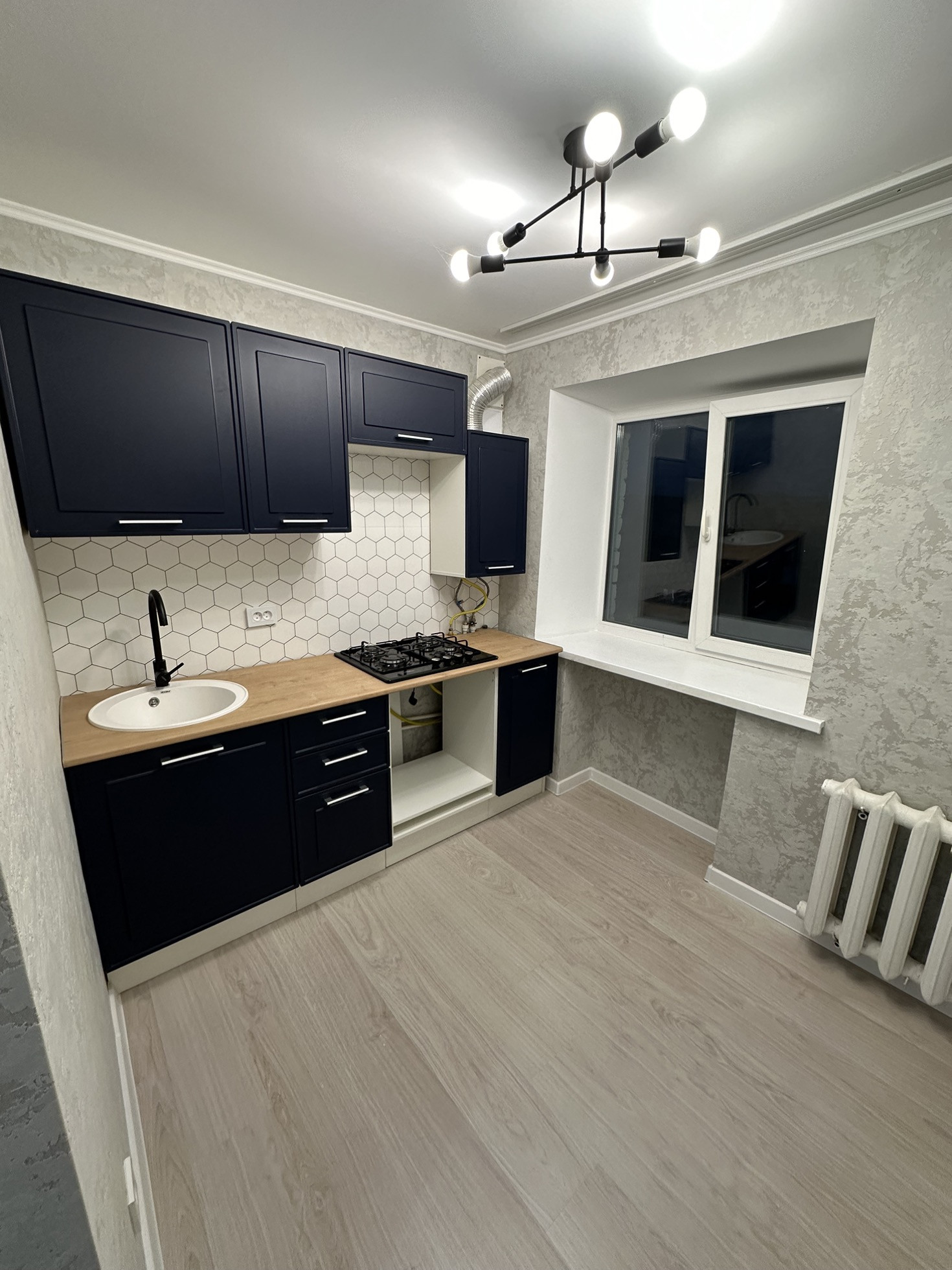 Новая кухонная гарнитура, новая газовая варочная панель, а также новые шторы, межкомнатные двери, входная дверь, стиральная машина, зеркало с подсветкой (3 режима), натяжные потолки, ламинат, светлые обои, пластиковые окна. В квартире всё абсолютно новое, после ремонта никто не жил. Есть балкон, но НЕ ЗАСТЕКЛЕН. Квартира очень светлая и теплая.