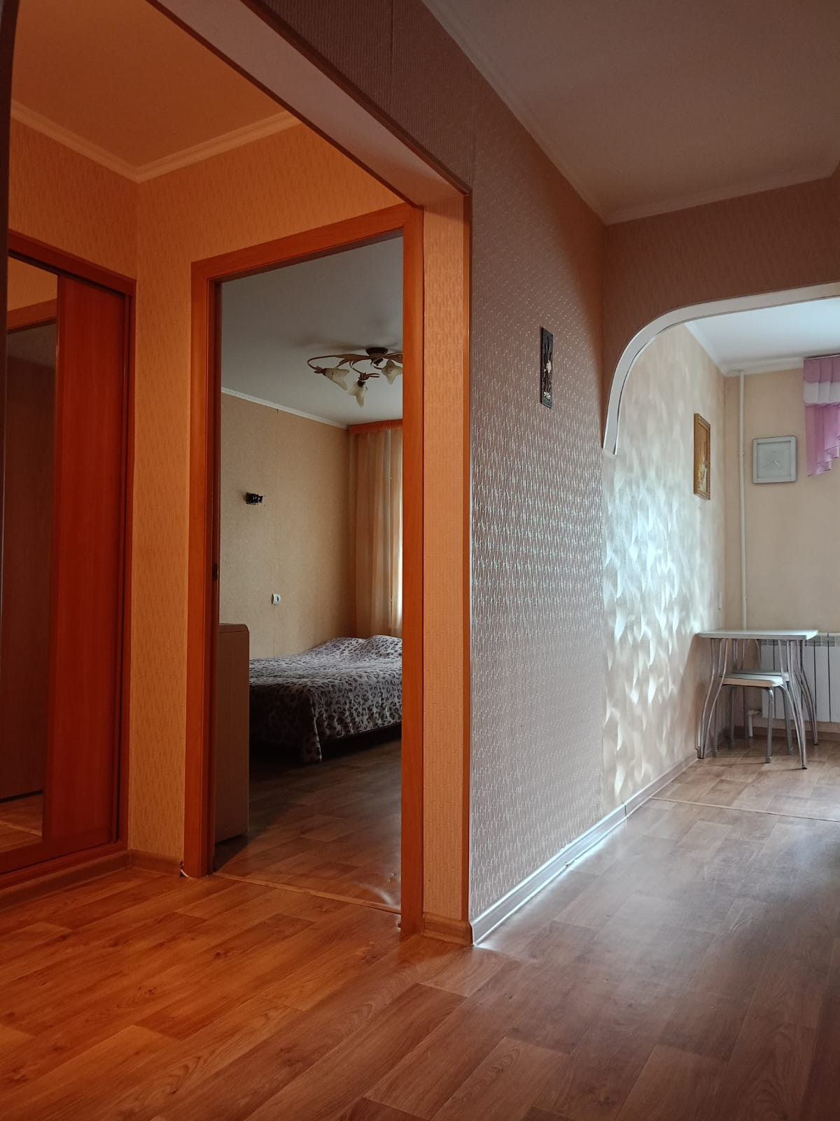 В квартире сделан хороший качественный  ремонт: на полу линолеум, выровнены потолки. потолки натяжные, качественные пластиковые окна, все двери поменяны.