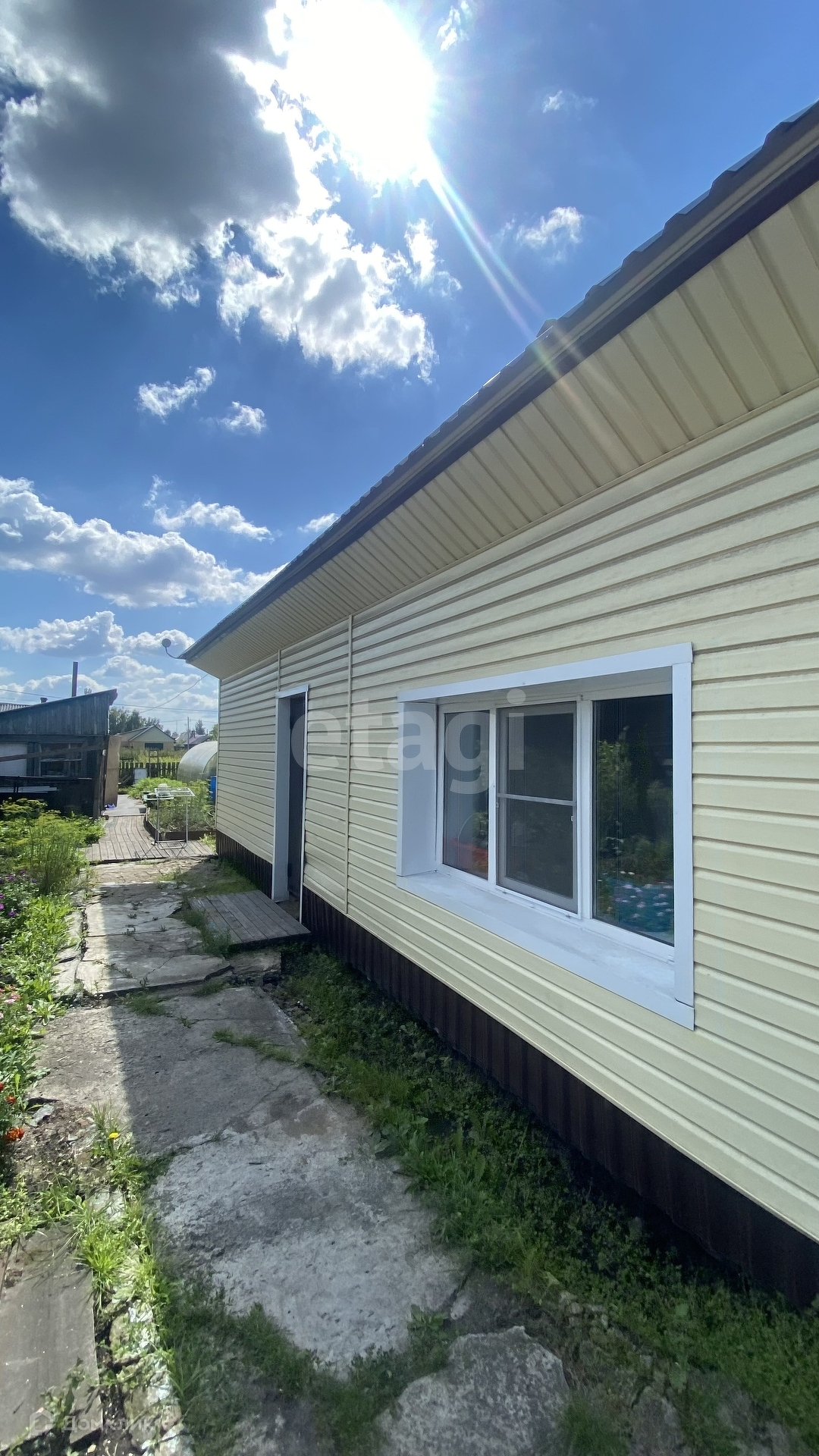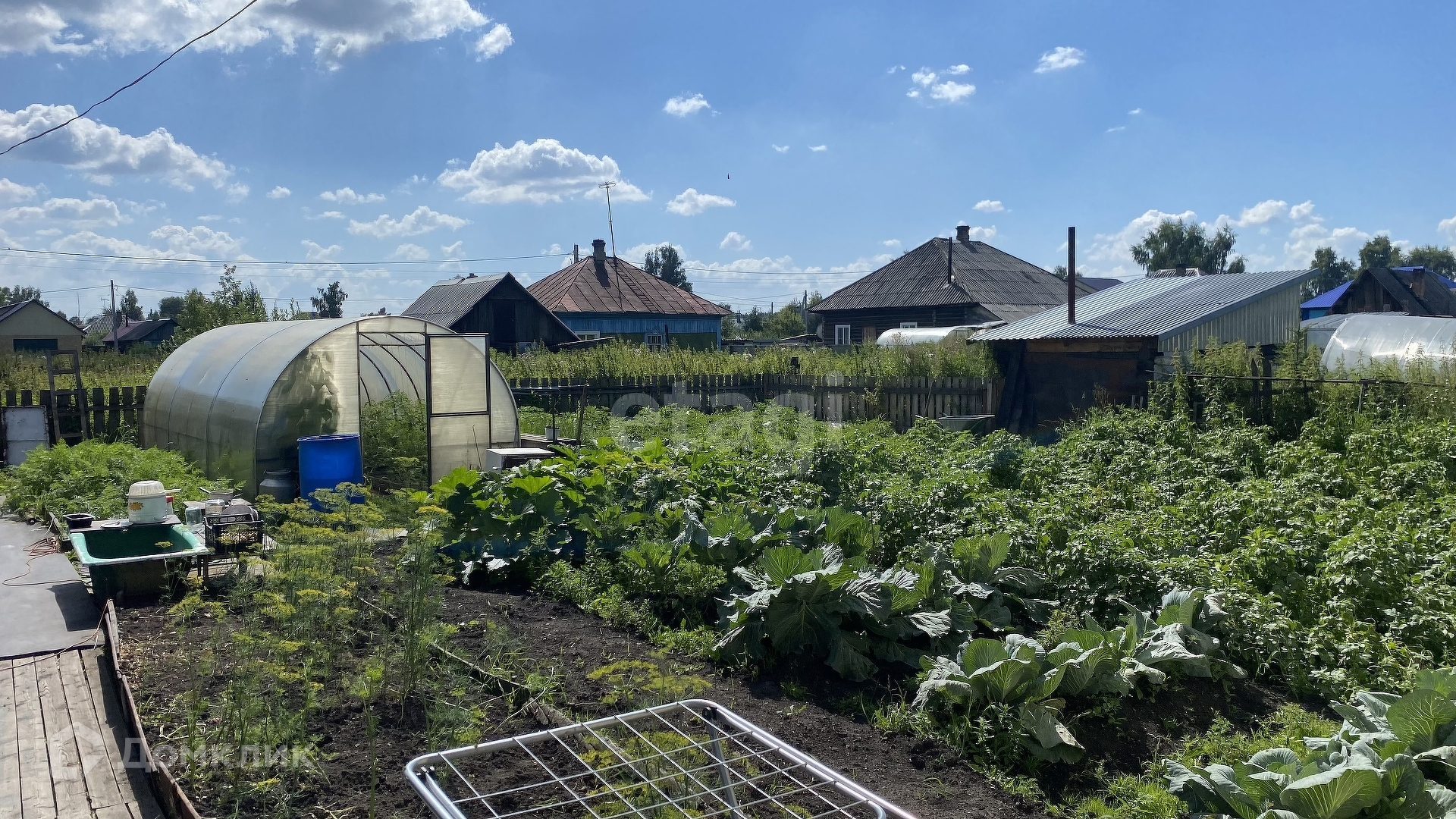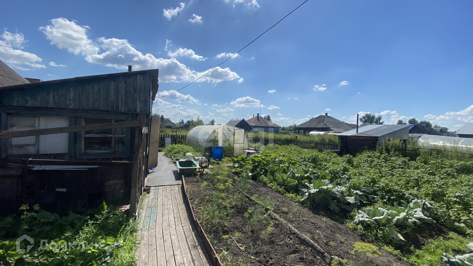 Имеется летняя веранда, кладовая, стайка, баня, теплица.