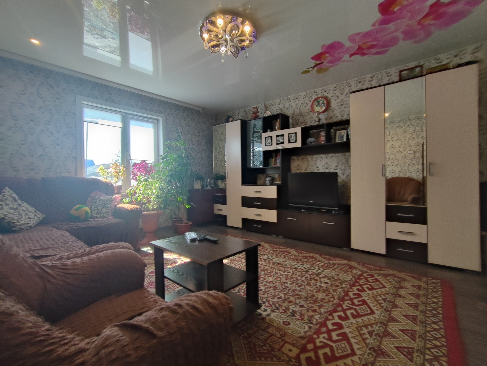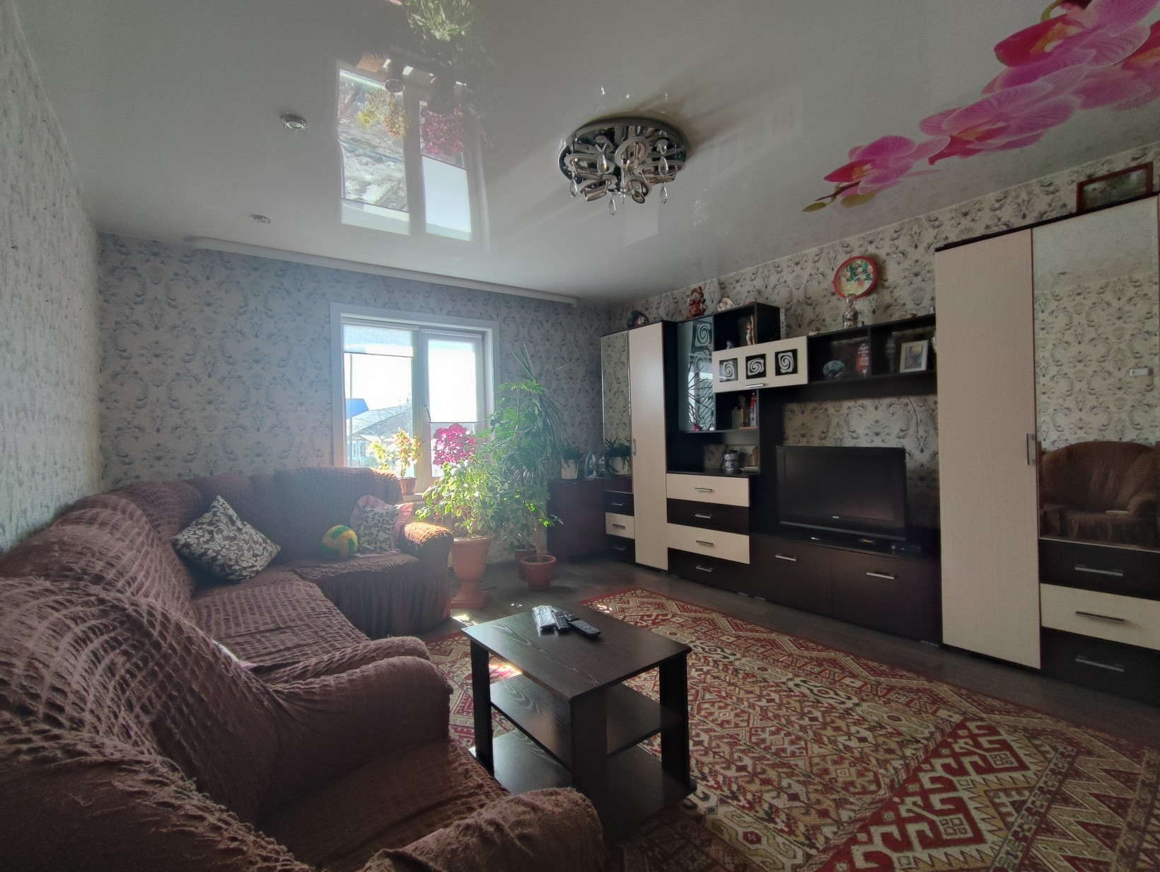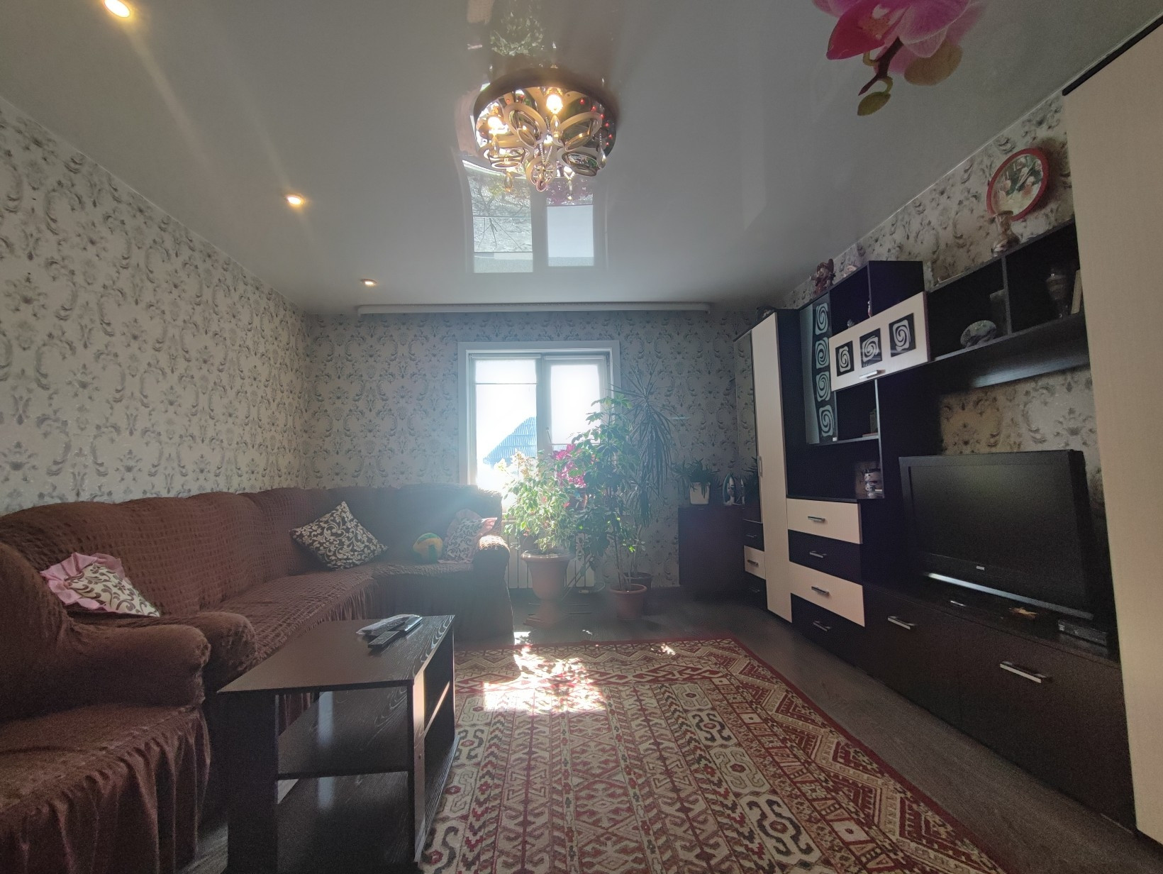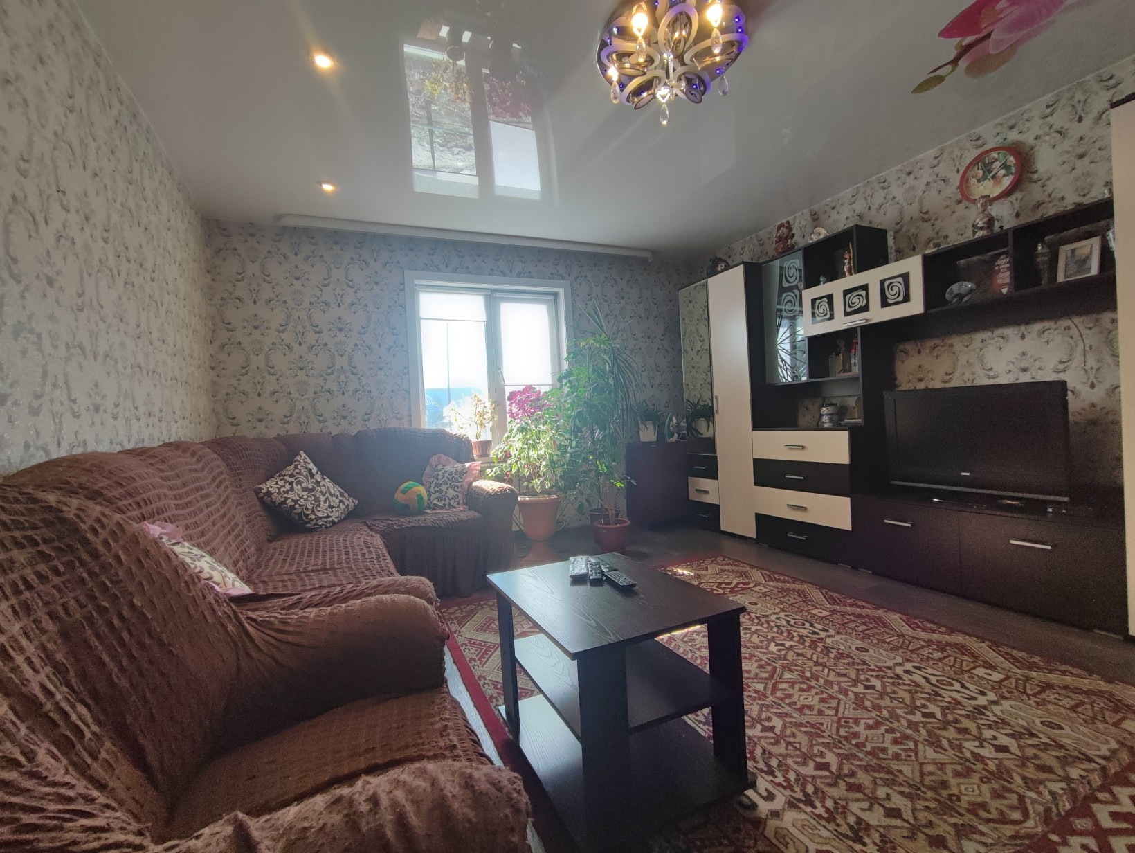 Окна ПВХ, везде натяжные потолки, на полу линолеум.