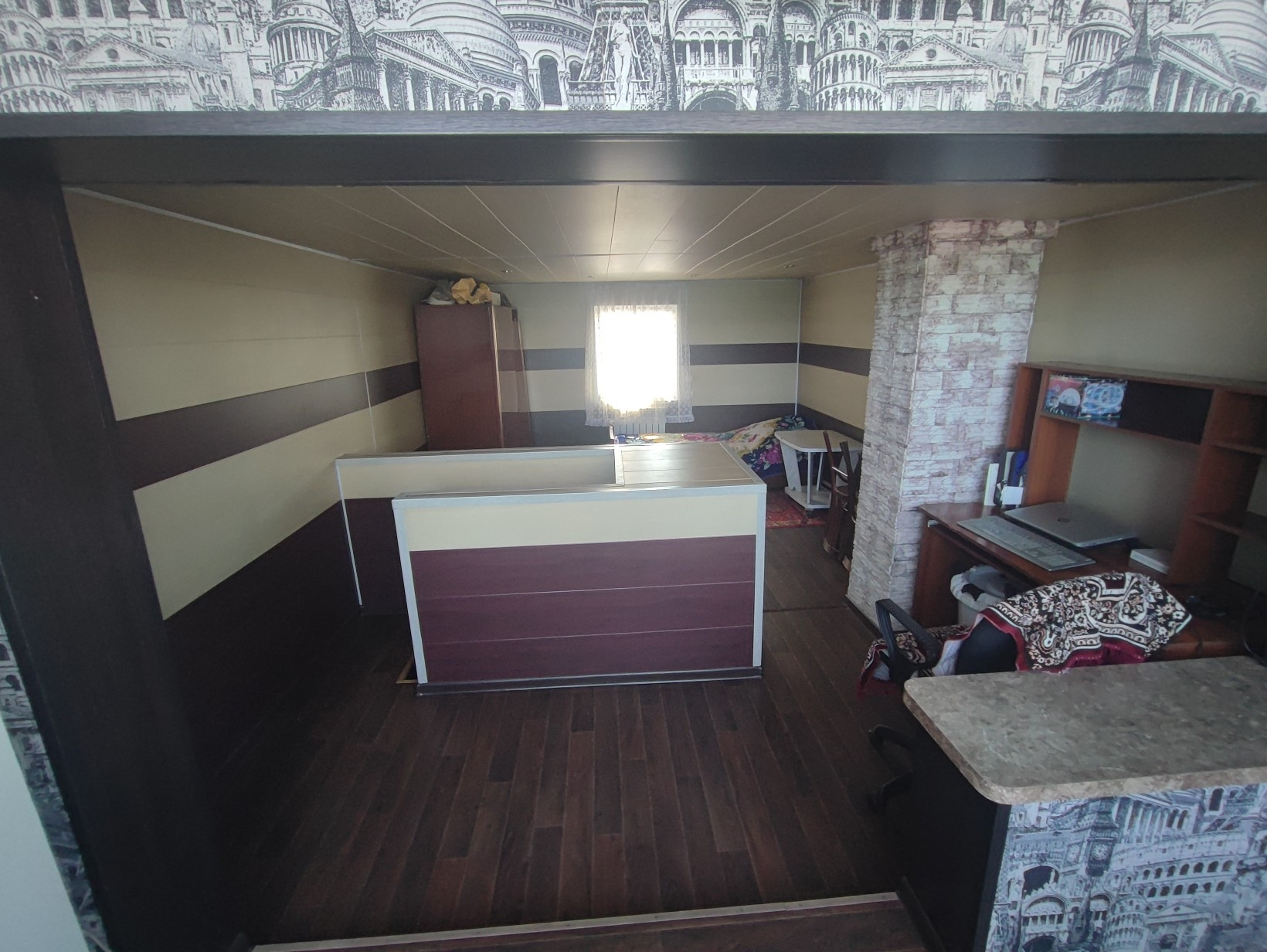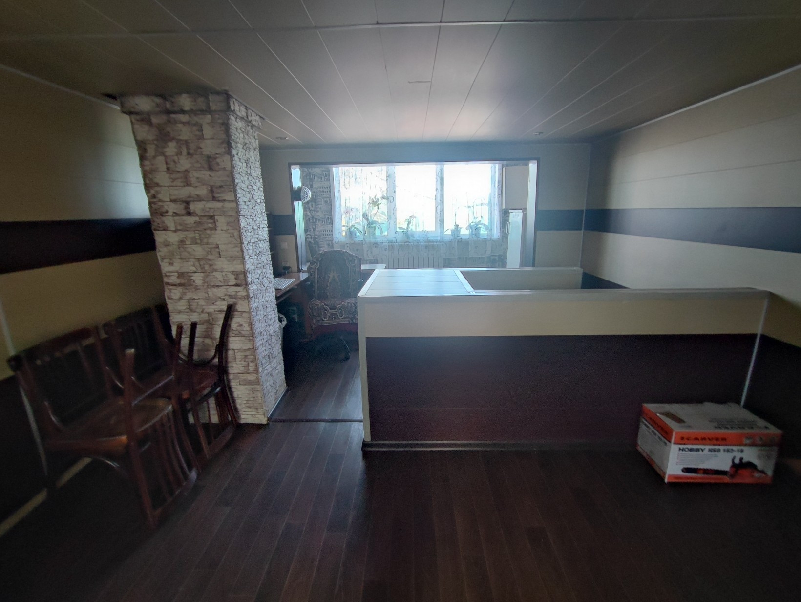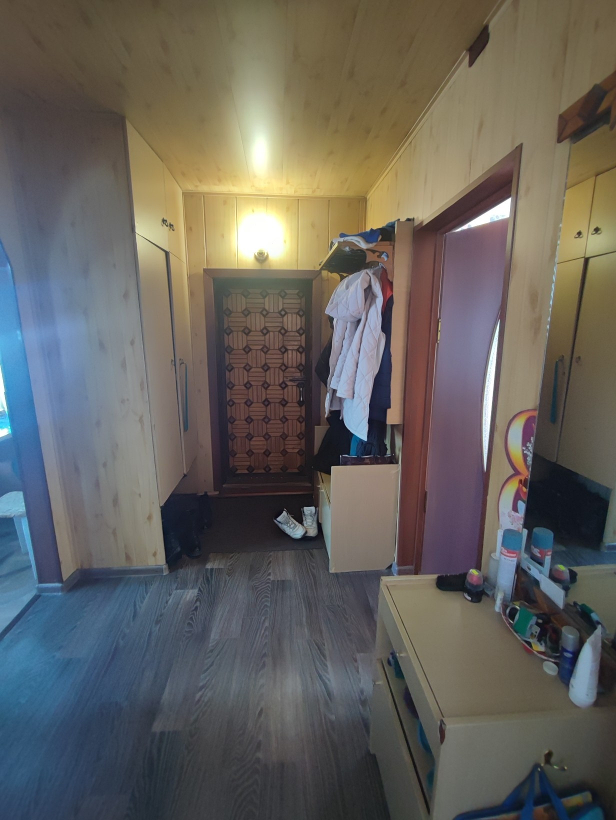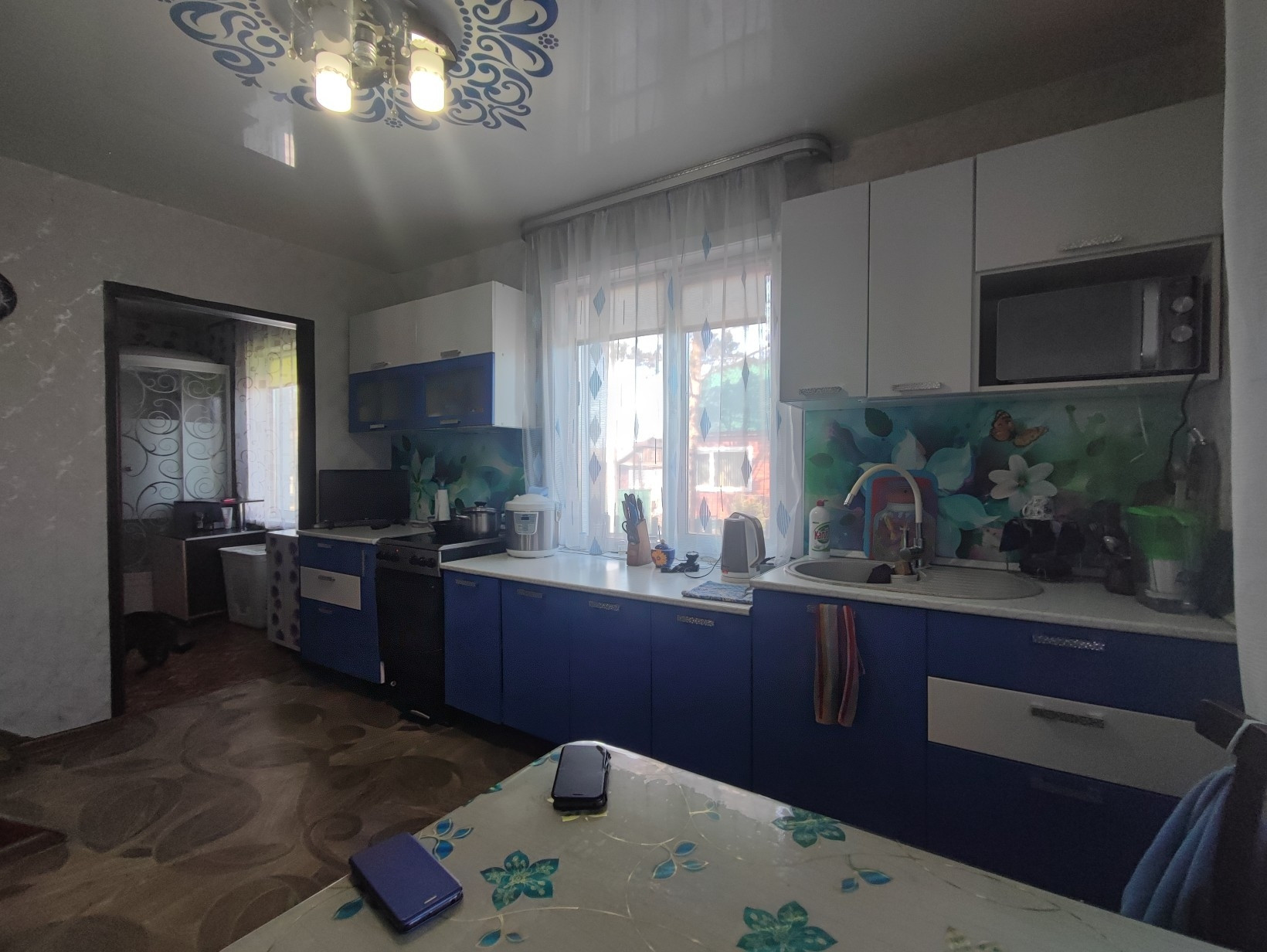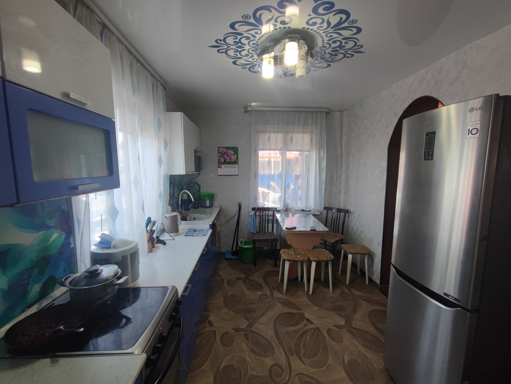 Окна ПВХ, везде натяжные потолки, на полу линолеум.