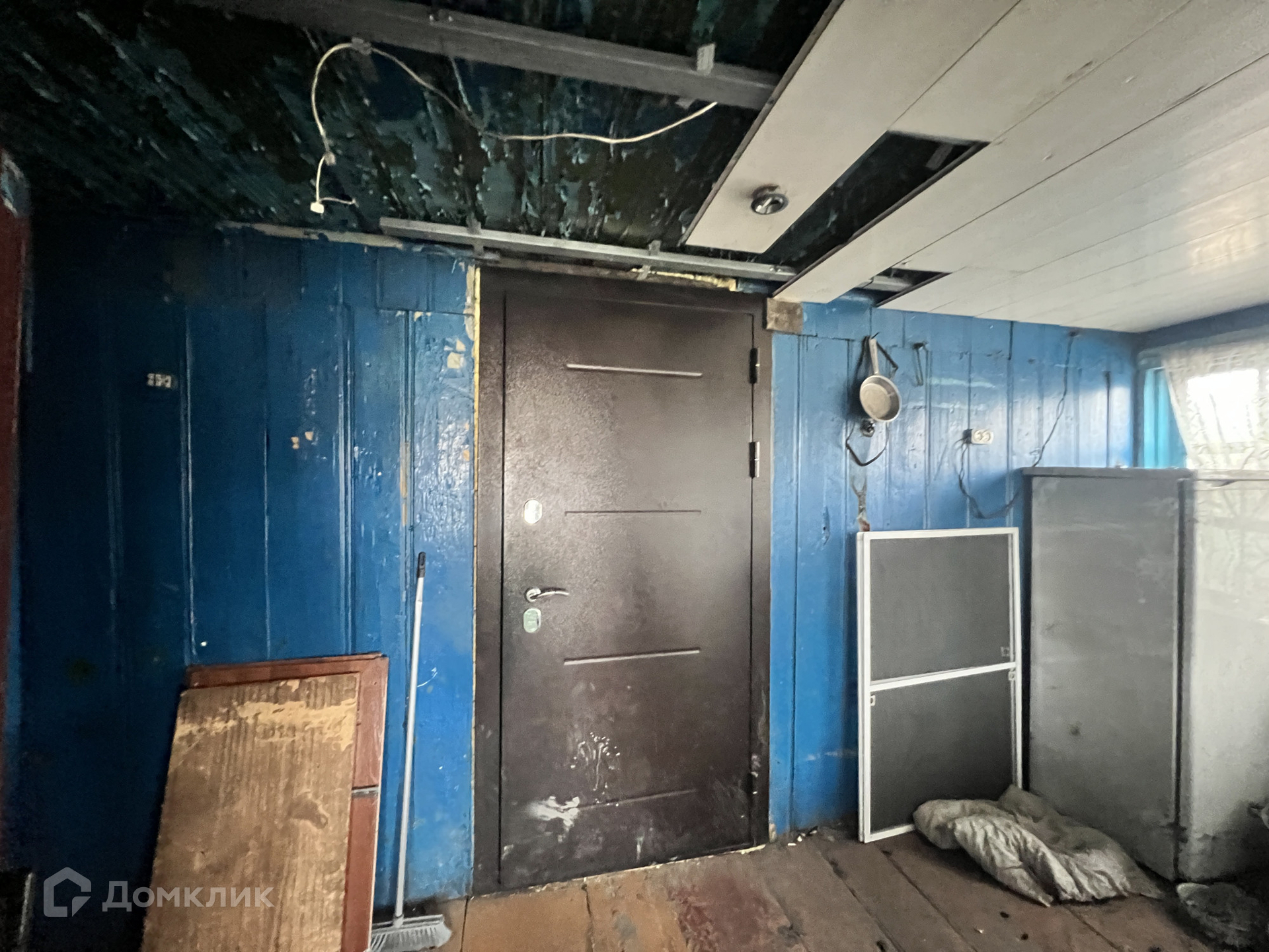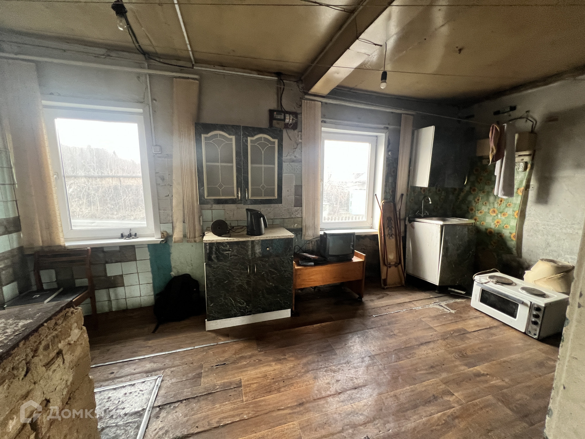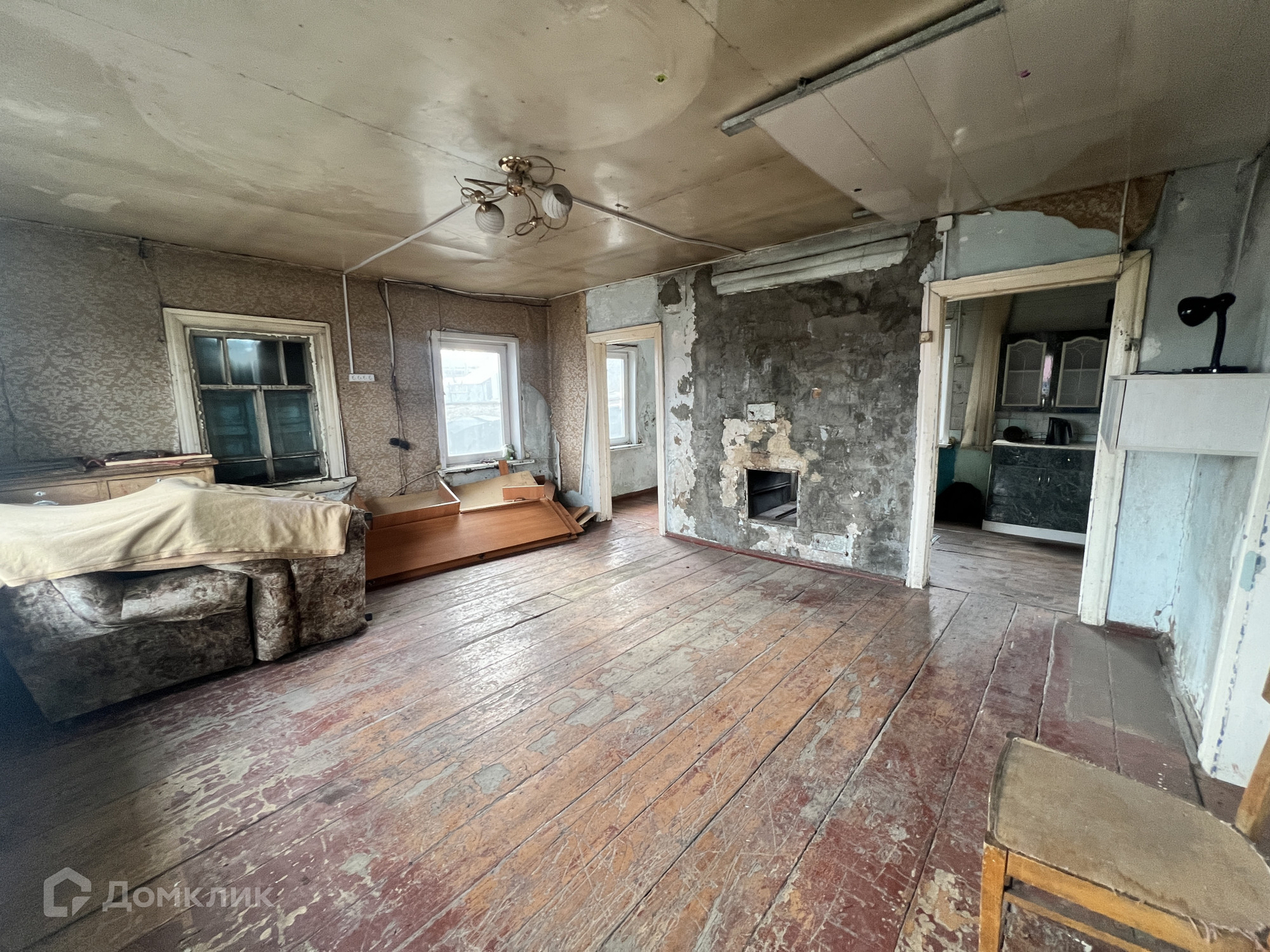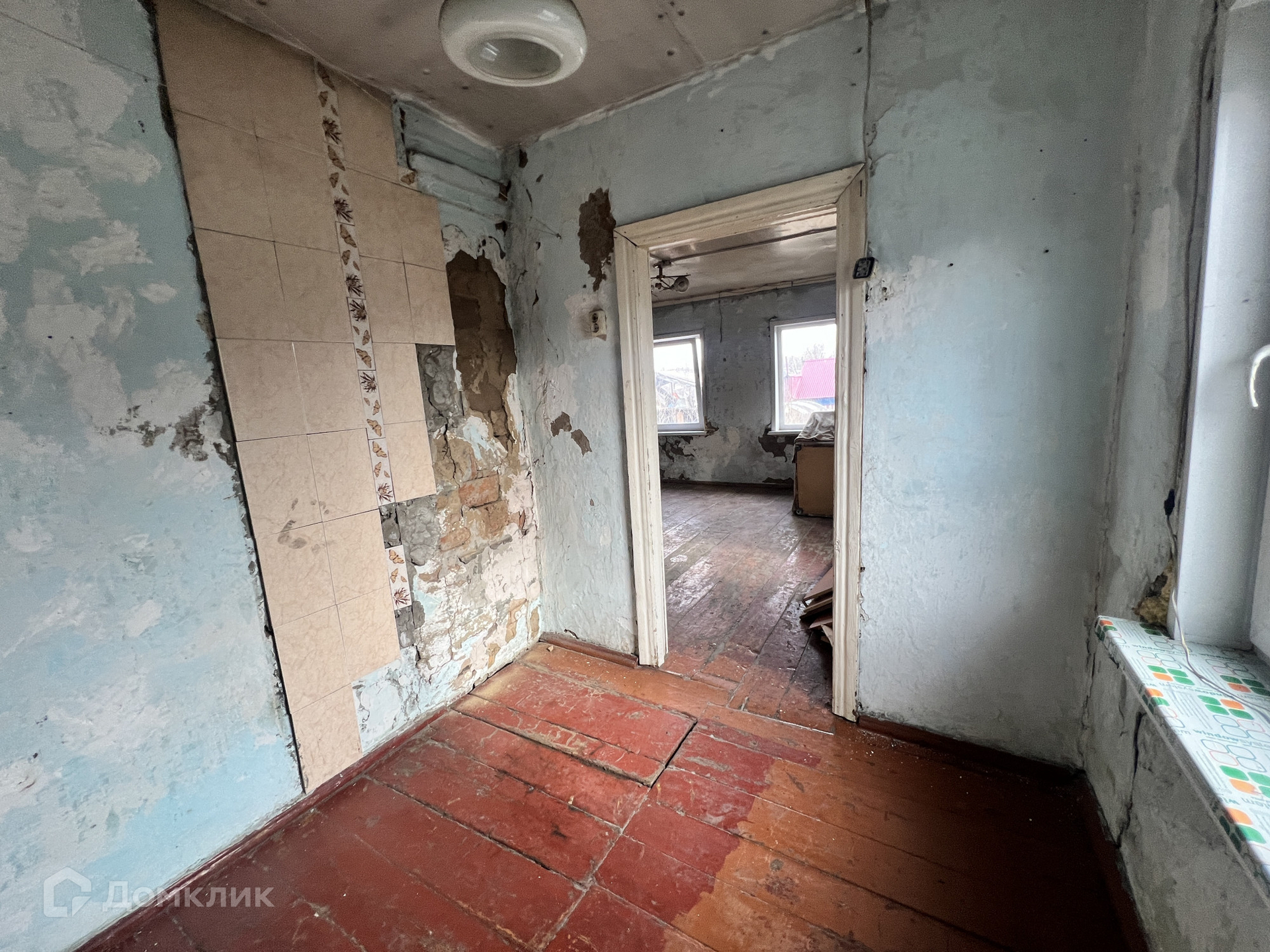 • S=44,5 м², площадь кухни - 12 м². Брусовой дом, 1951 года постройки. Дом теплый и сухой. Вода и слив в доме. Обычное жилое состояние. Окна ПВХ. Полы - дощатые. Высокие беленые потолки  - 2,7 м. Стены ровные. Санузел на улице. Отопление от печи. Входная дверь металлическая.