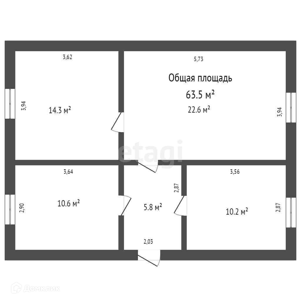 Общая площадь 63.5 м2