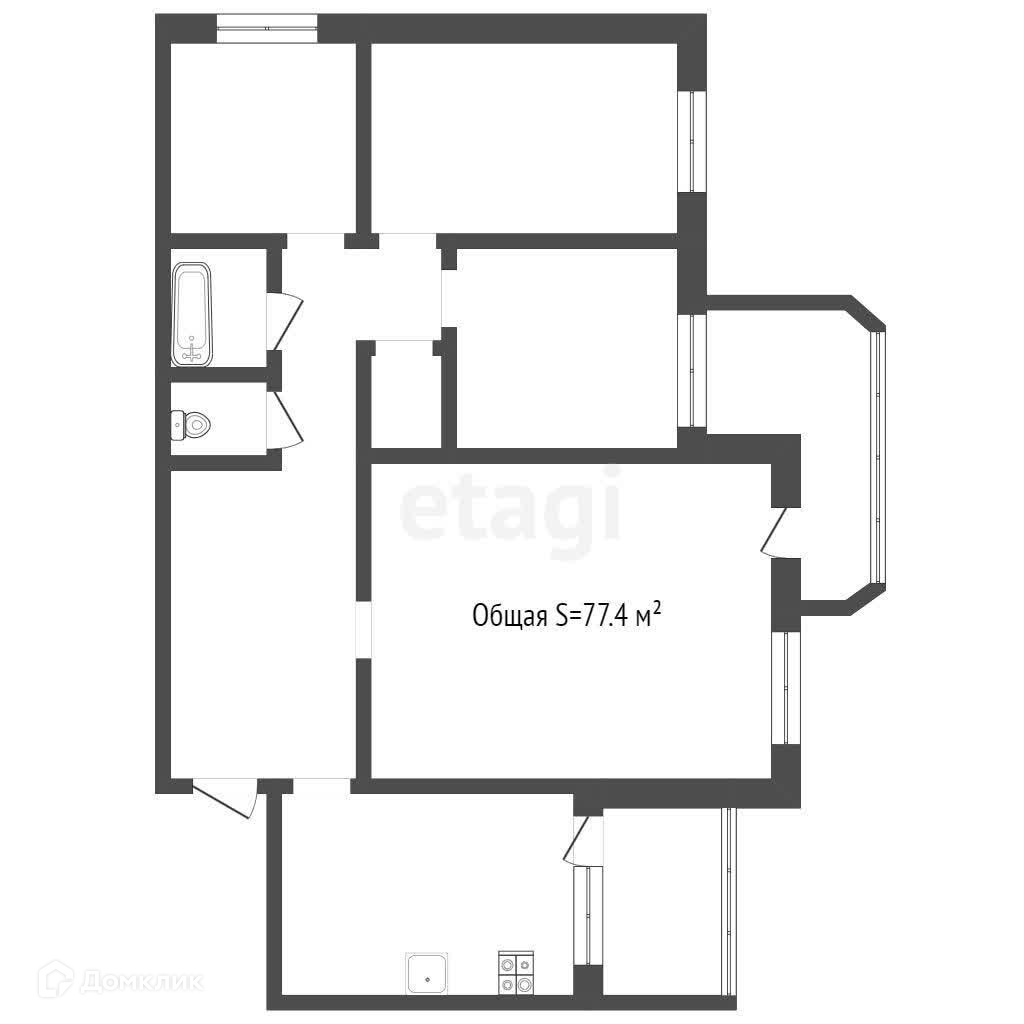 Общая площадь 77.4 м2